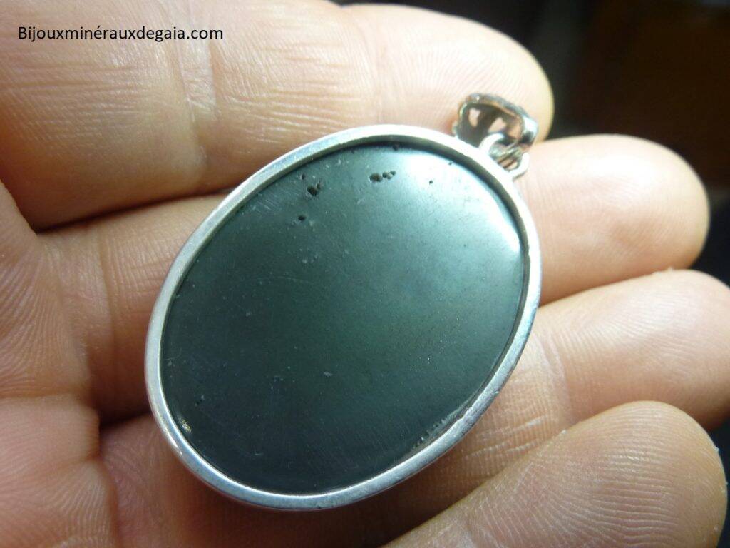 Pendentif obsidienne oeil celeste monture argent 925 ref 4344