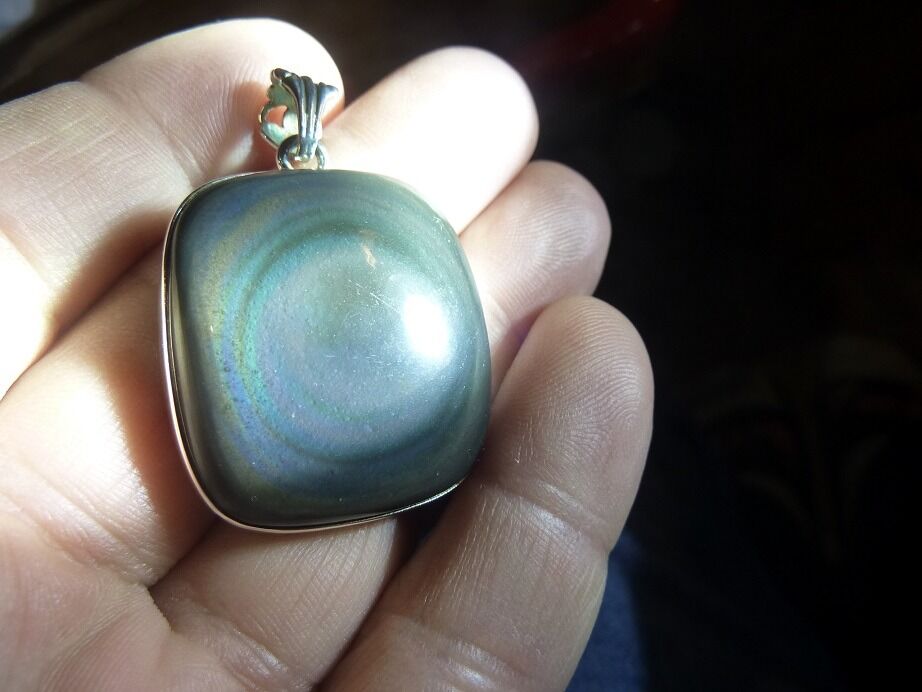 Pendentif Obsidienne oeil céleste monture argent 925 ref 5999