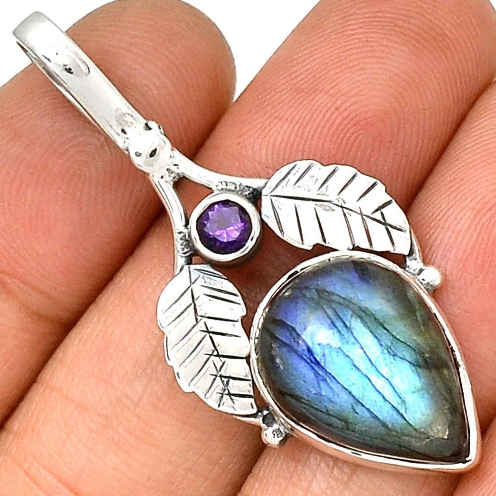 Pendentif protection labradorite et améthyste Monture argent 925 ref 9764