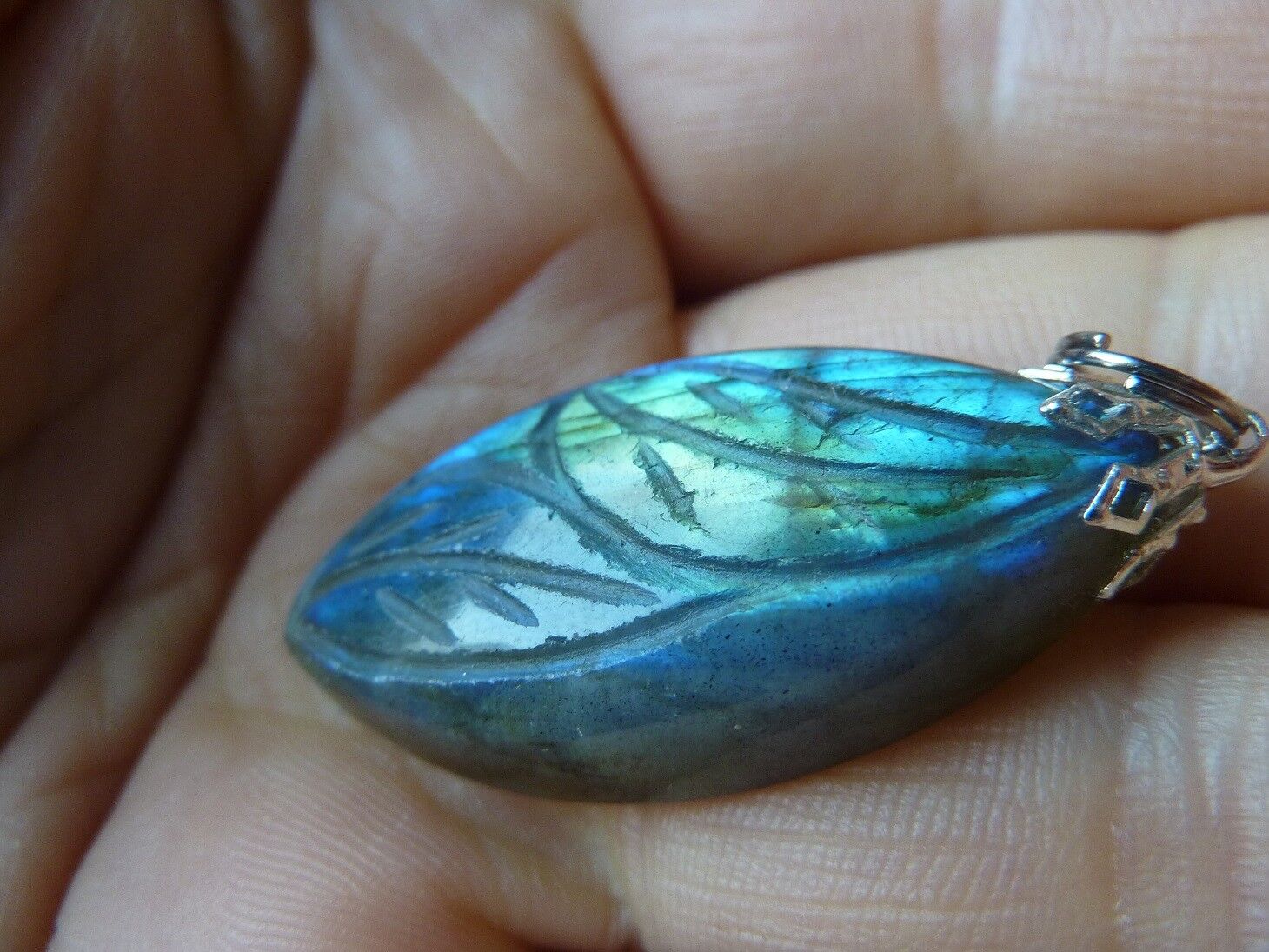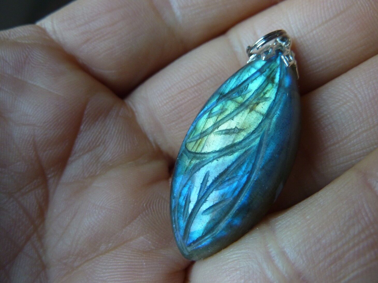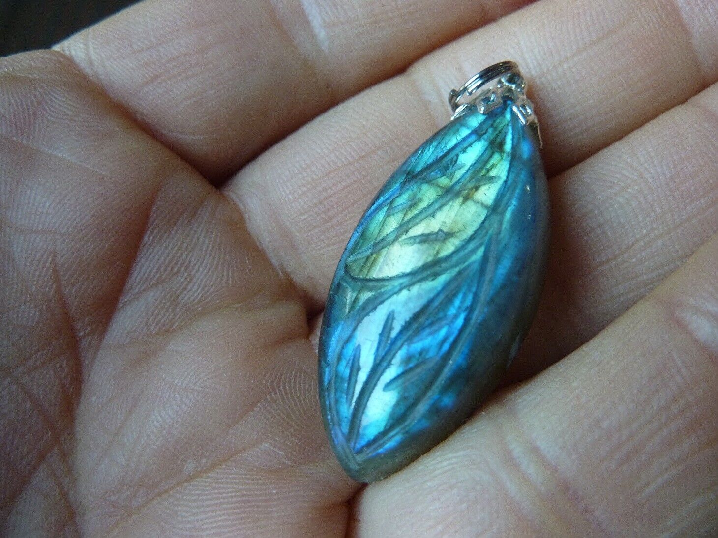 Pendentif Protection Labradorite fleur sculpté