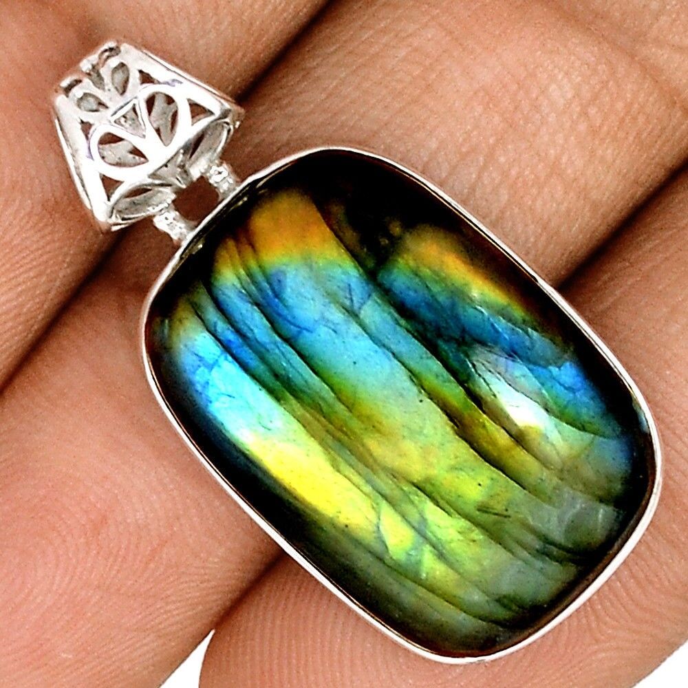 Pendentif protection labradorite Monture argent 925 ref 5775