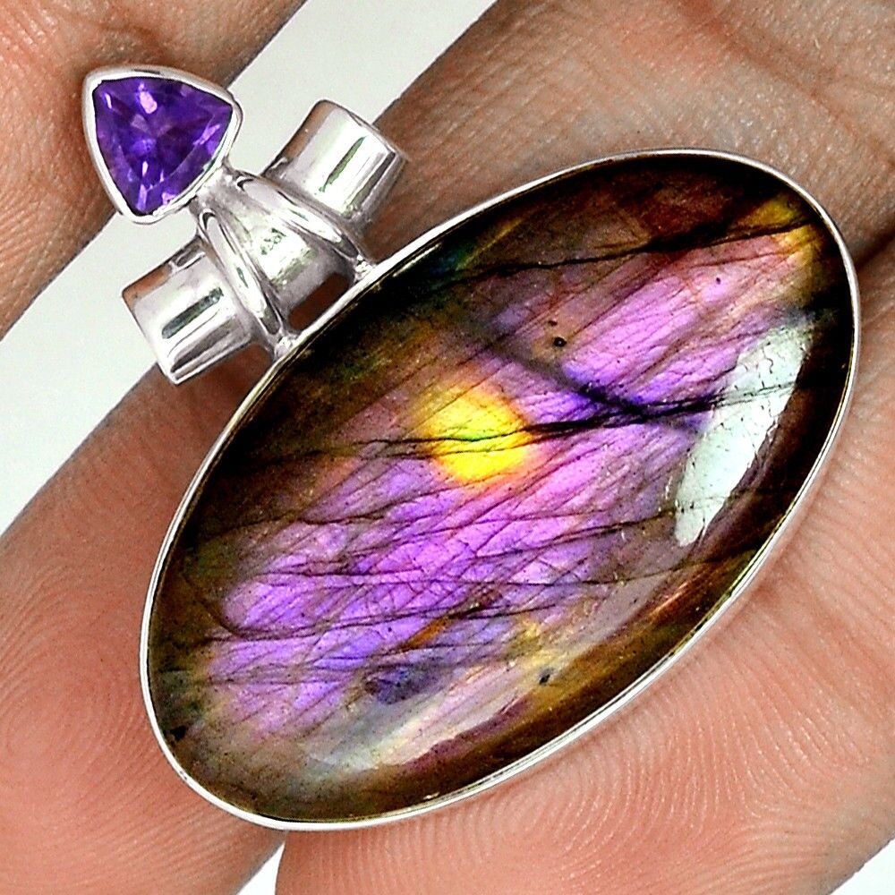 Pendentif labradorite violet-Améthyste monture argent 925 ref 4706
