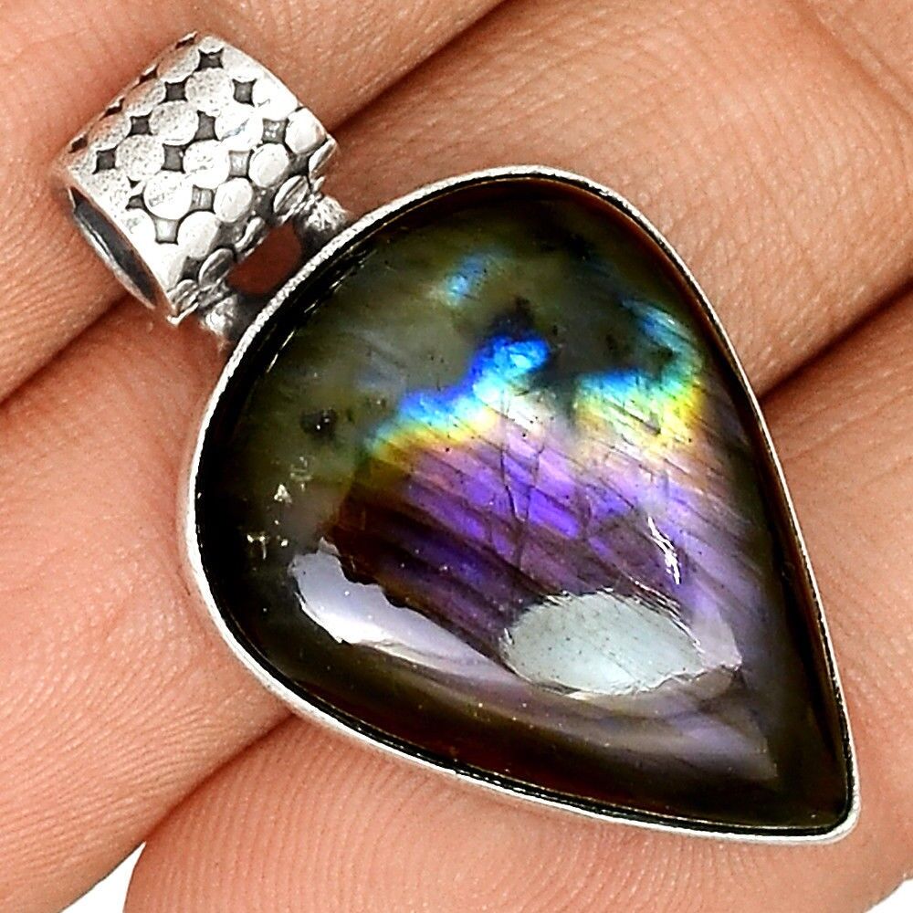 Pendentif protection labradorite violet très rare! Monture argent 925 ref 1864
