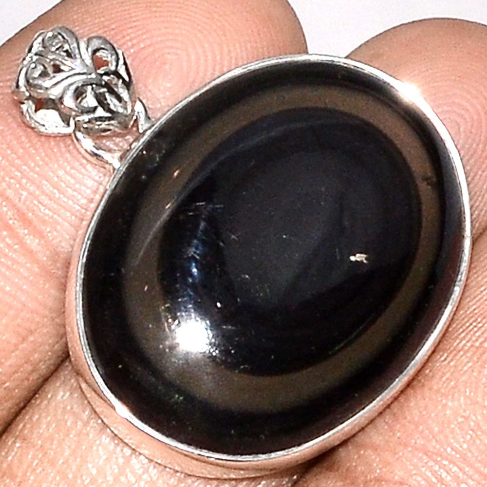 Pendentif protection obsidienne oeil celeste monture argent 925 ref 7577