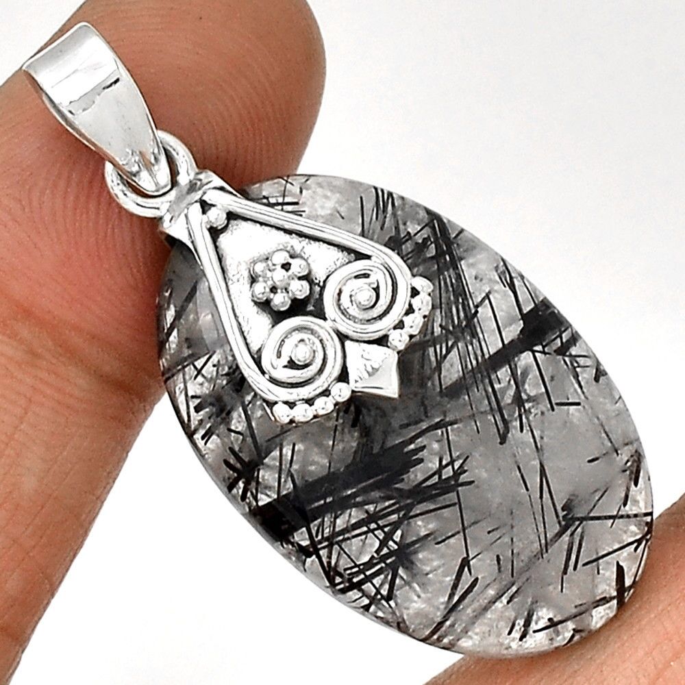 PENDENTIF PROTECTION QUARTZ TOURMALINÉ MONTURE ARGENT 925 ref 1921