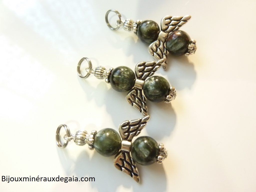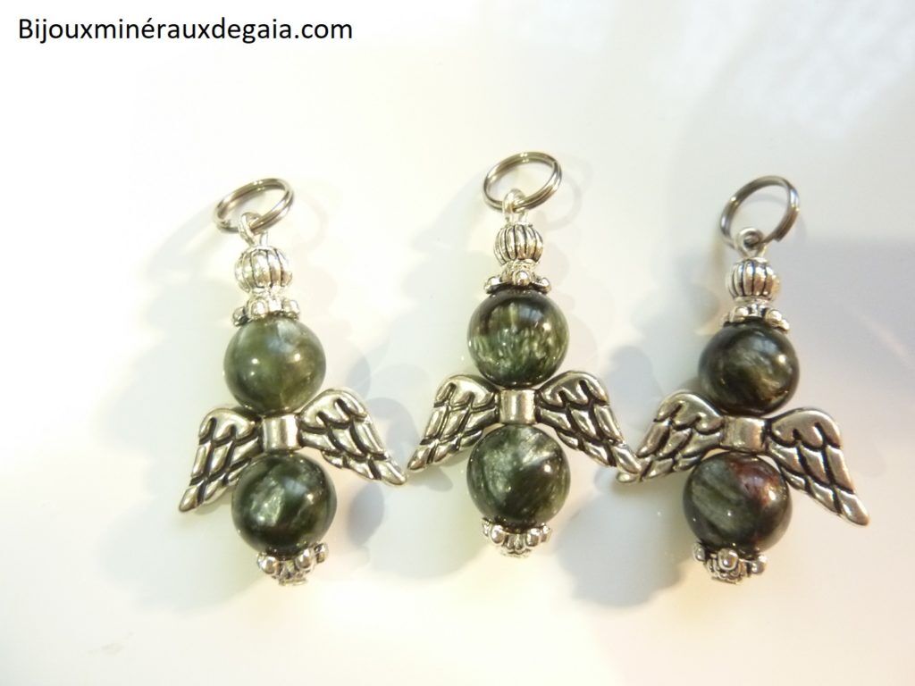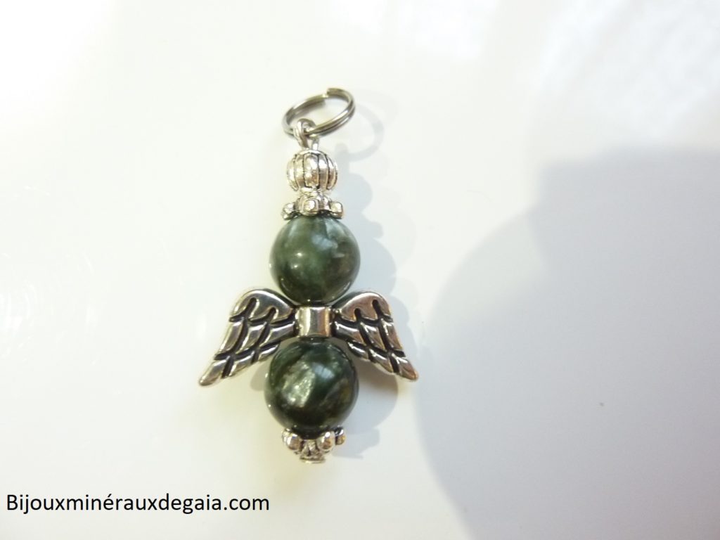 Pendentif Séraphinite ange – perles rondes 8 mm
