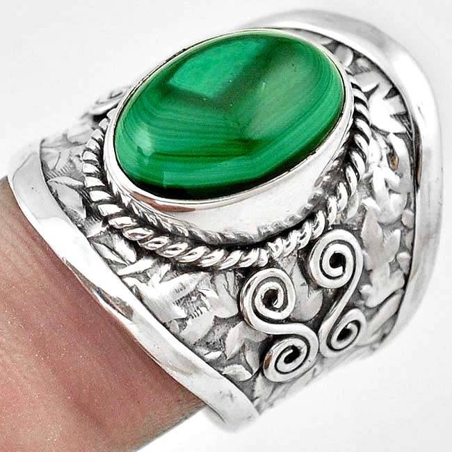 Sublime bague malachite monture argent 925 taille 58 3/4 REF 0379