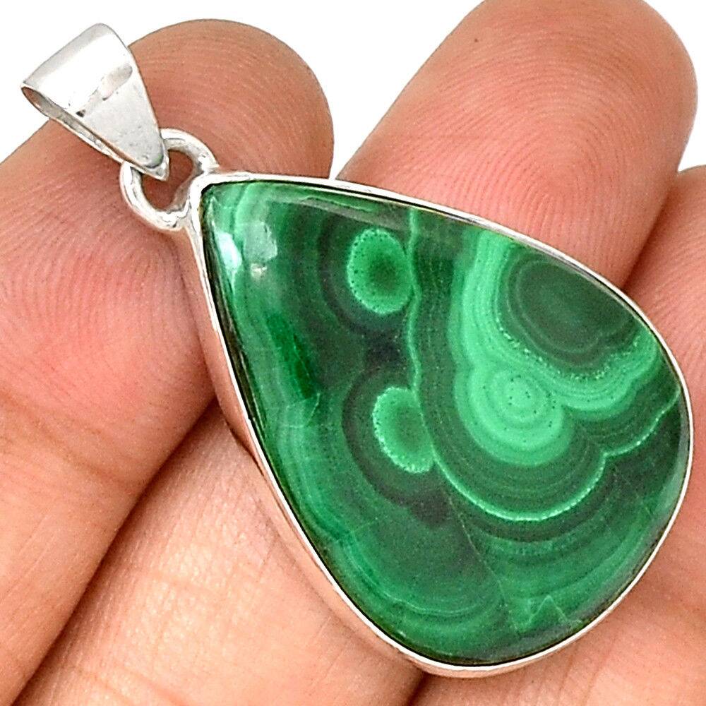 Sublime pendentif malachite monture argent 925 REF 3065