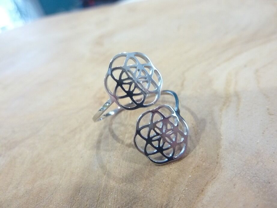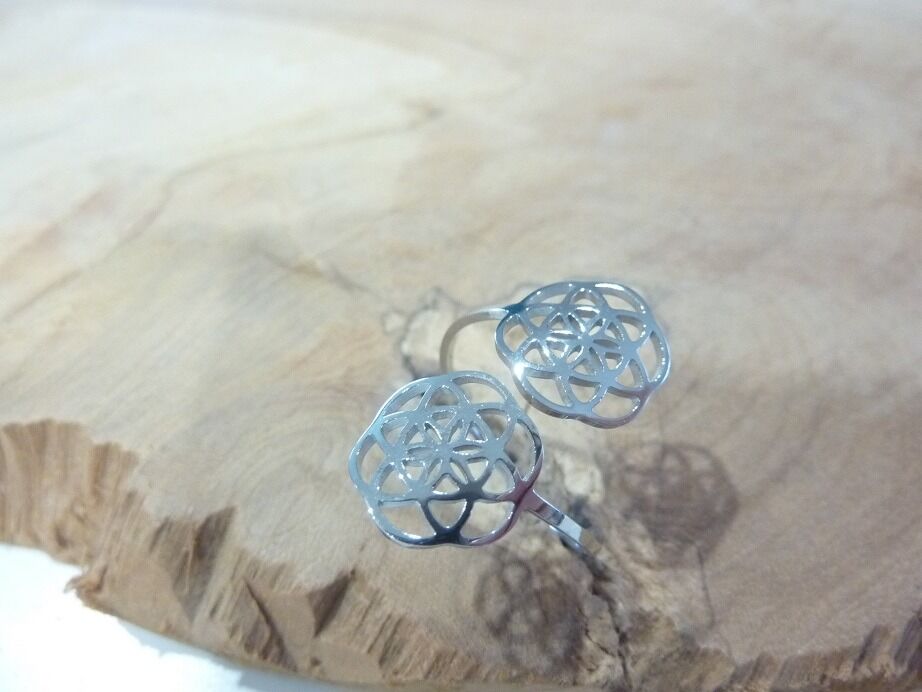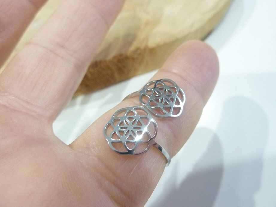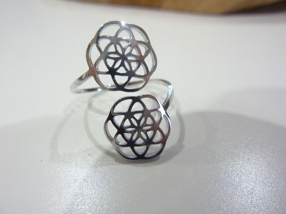 - Bague réglable Fleur de vie en acier inoxydable (Ne rouille pas)