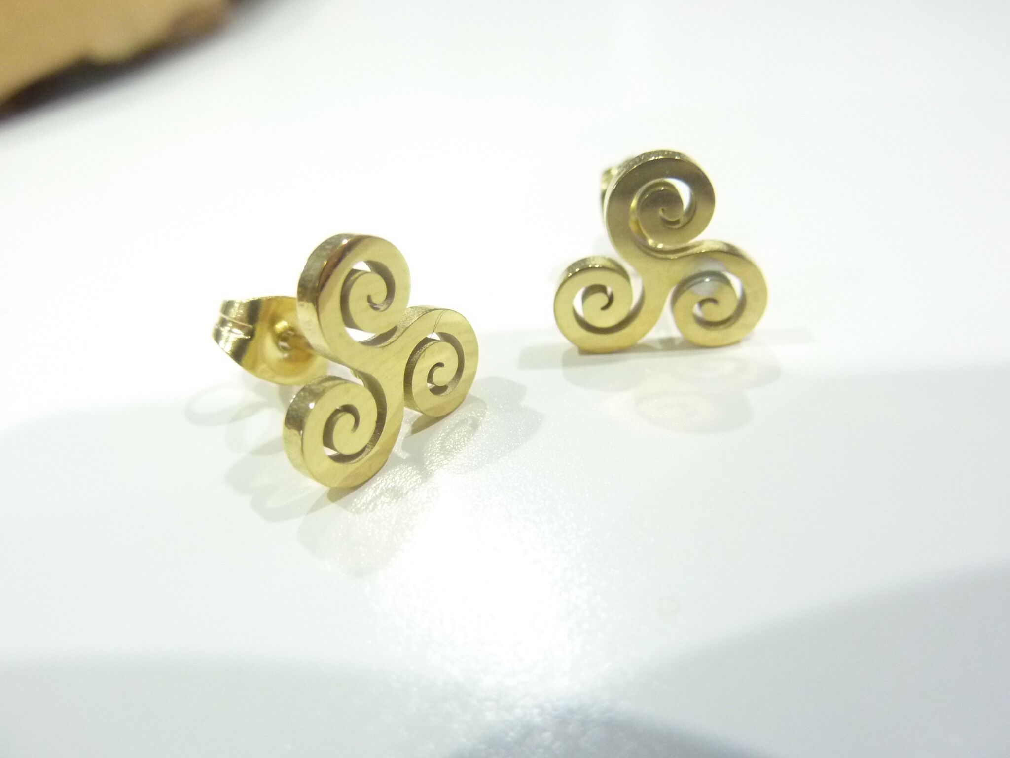 Découvrez nos boucles d’oreilles « clous d’oreilles triskel celtique en acier inoxydable doré !