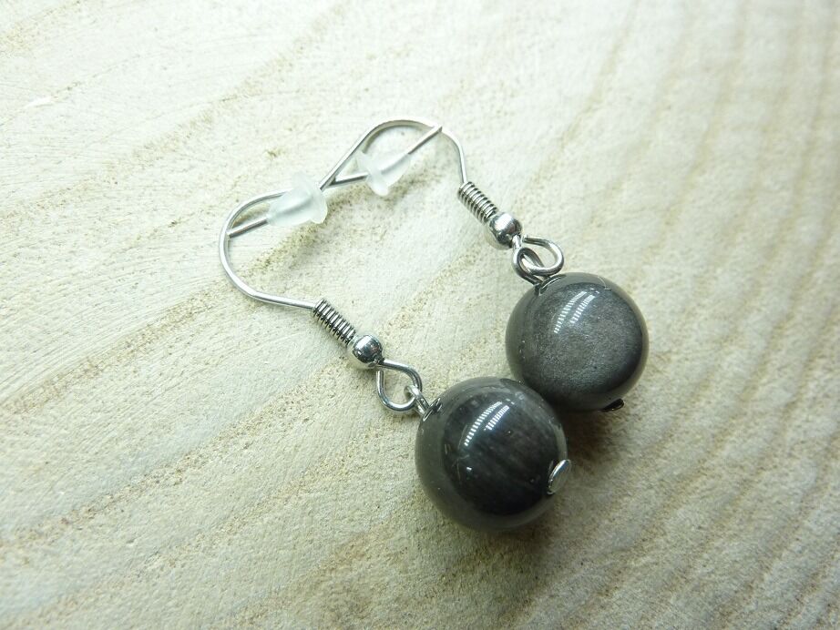 Vous recevrez une paire de Boucles d’oreilles Obsidienne argentée perles rondes 10 mm de qualité similaire