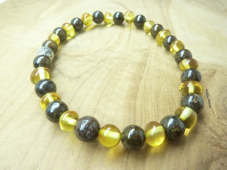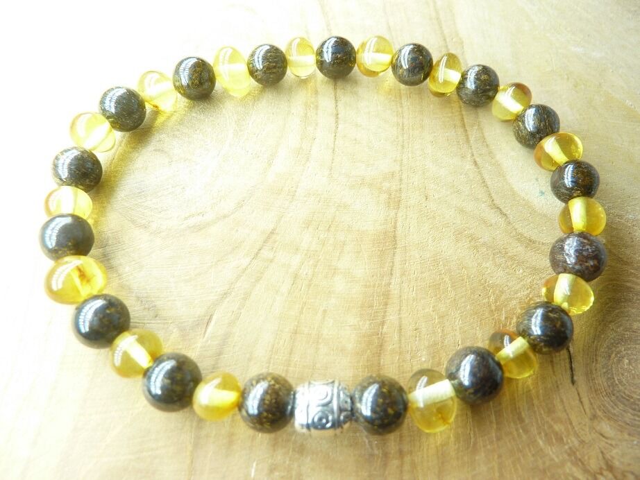 Découvrez la combinaison parfaite de la force de la Bronzite et de l’énergie apaisante de l’Ambre miel de la Baltique avec notre bracelet en Bronzite et Ambre miel.