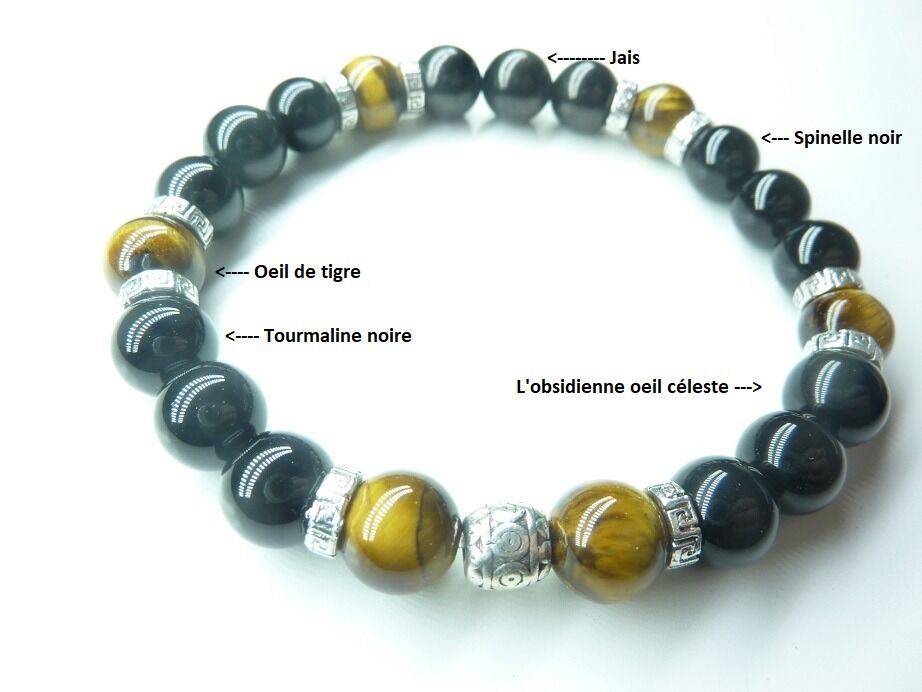 - 🔮 Pierres : Spinelle noir · Obsidienne œil céleste . Tourmaline noire · Jais · Œil de tigre