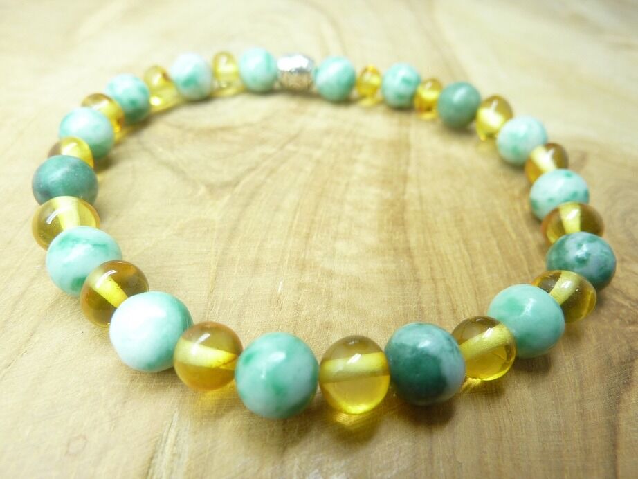 Bracelet Jade vert – Ambre miel de la Baltique
