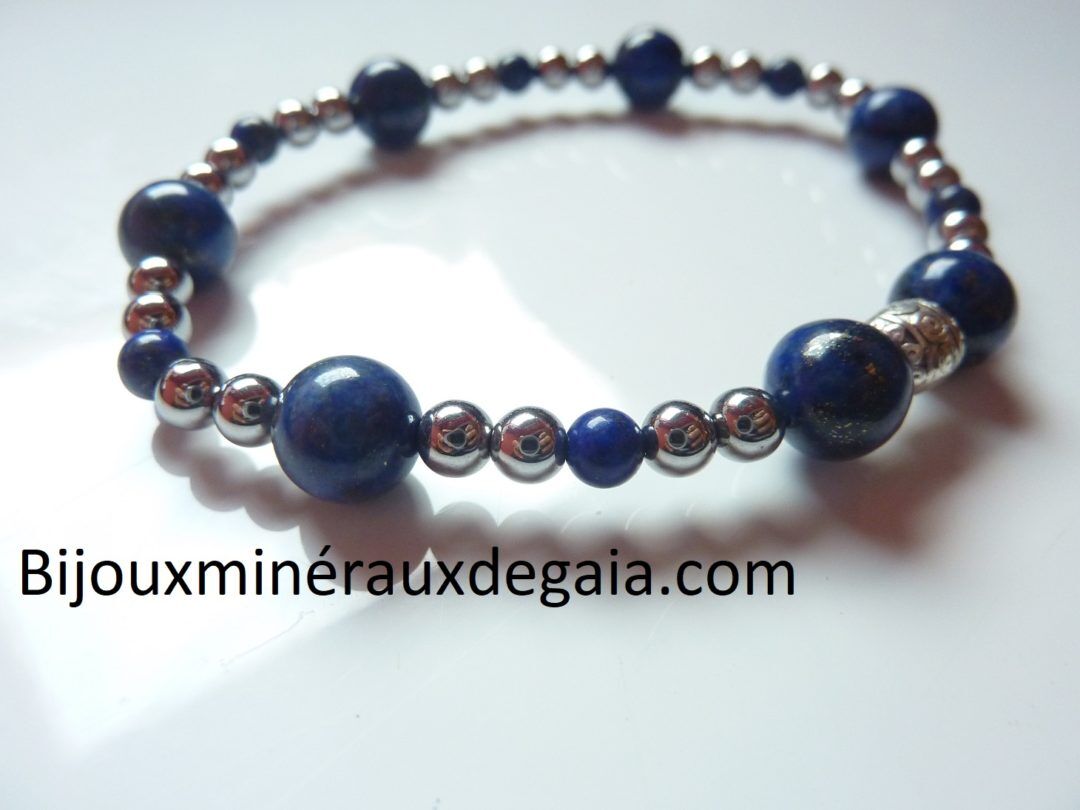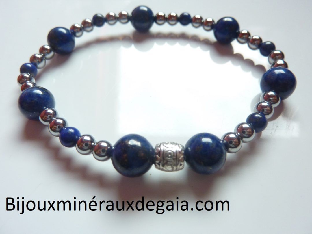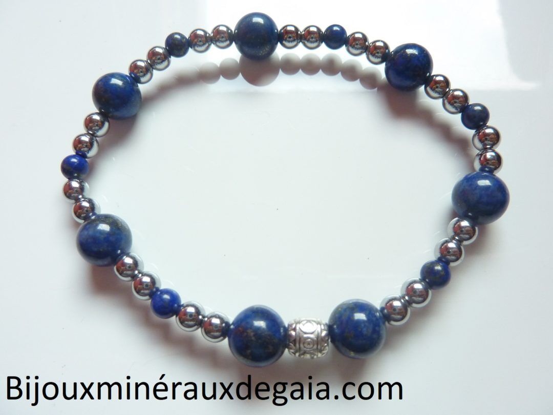 BRACELET LAPIS LAZULI-HEMATITE PERLES RONDES 8-4 MM