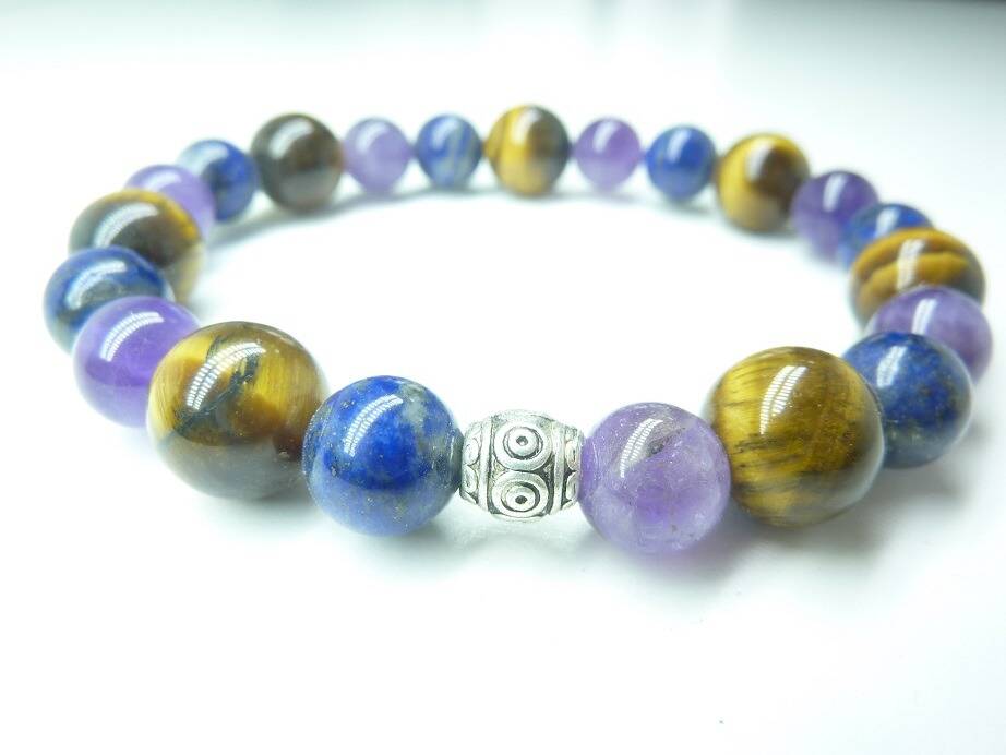 Bracelet Oeil de tigre-Lapis lazuli-Améthyste