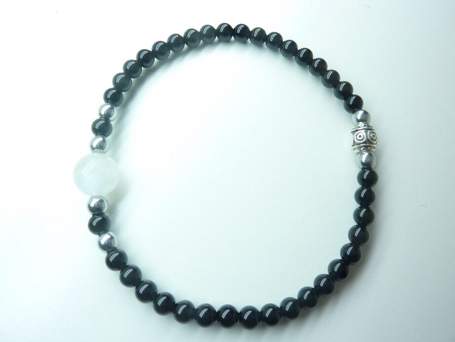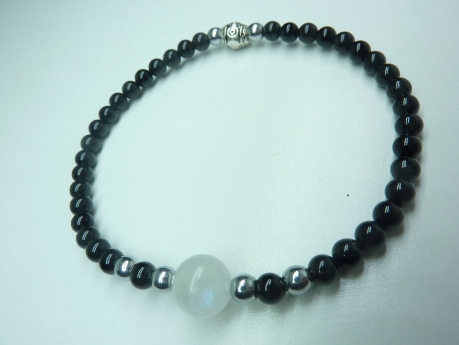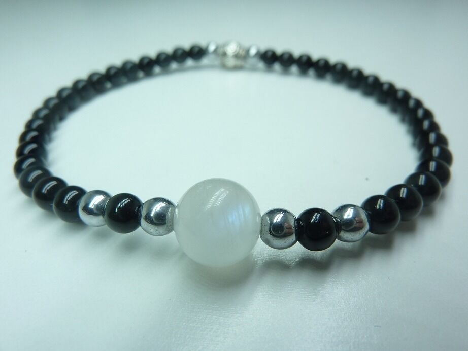 Bracelet « Protection & anti-stress » en Spinelle noir-Pierre de lune