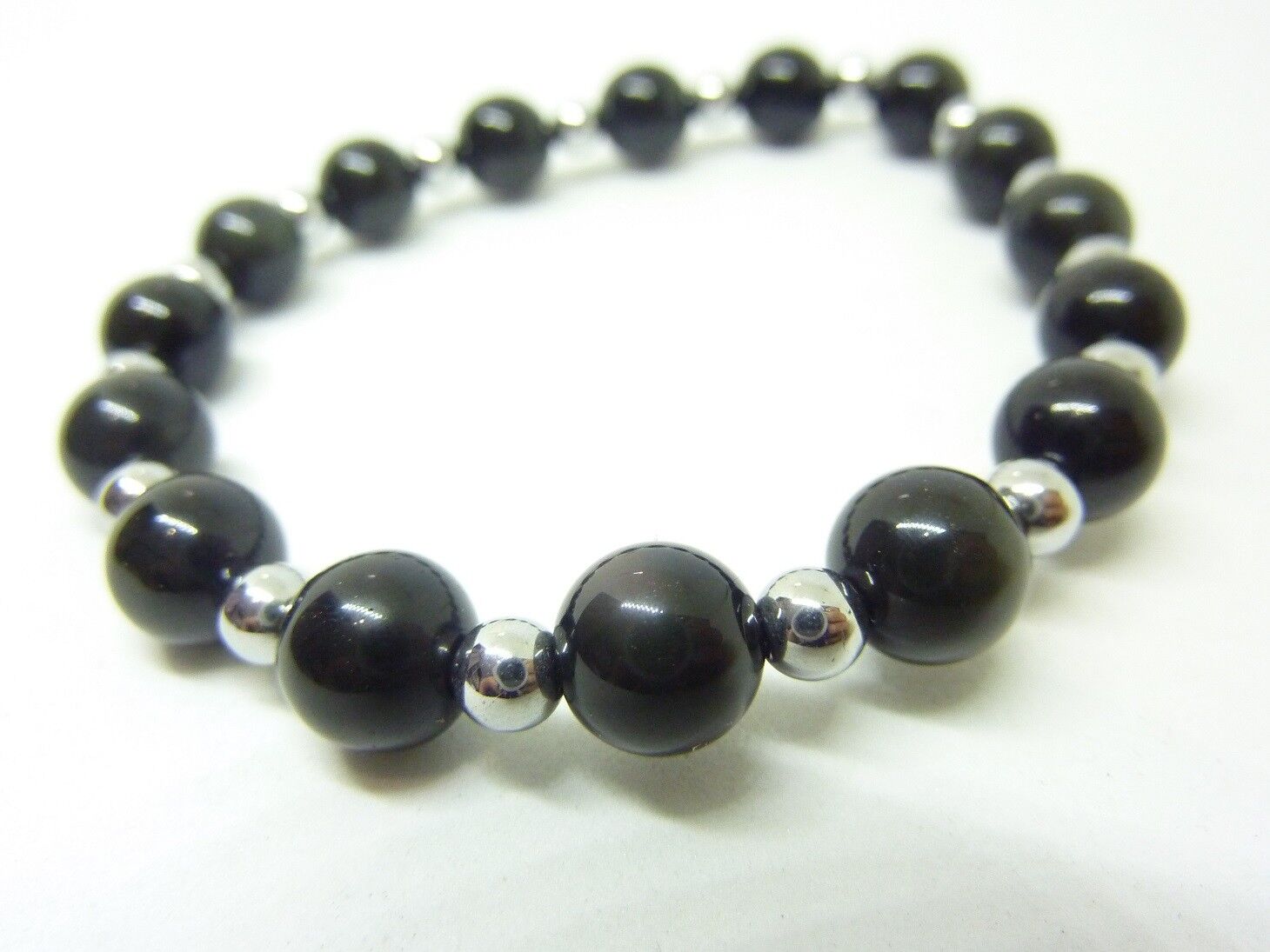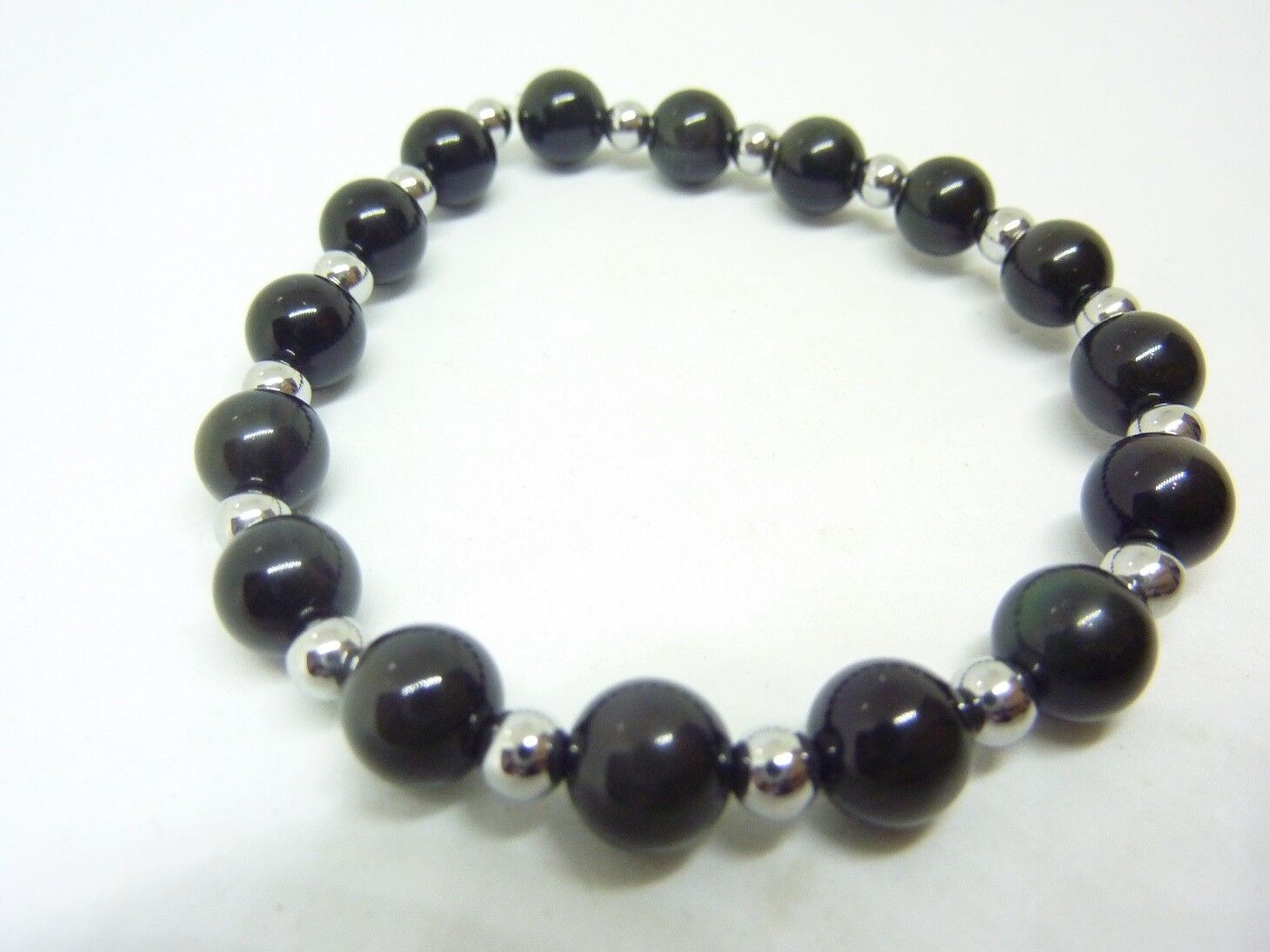 Bracelet Obsidienne oeil céleste-Hématite – perles rondes 8-4 mm