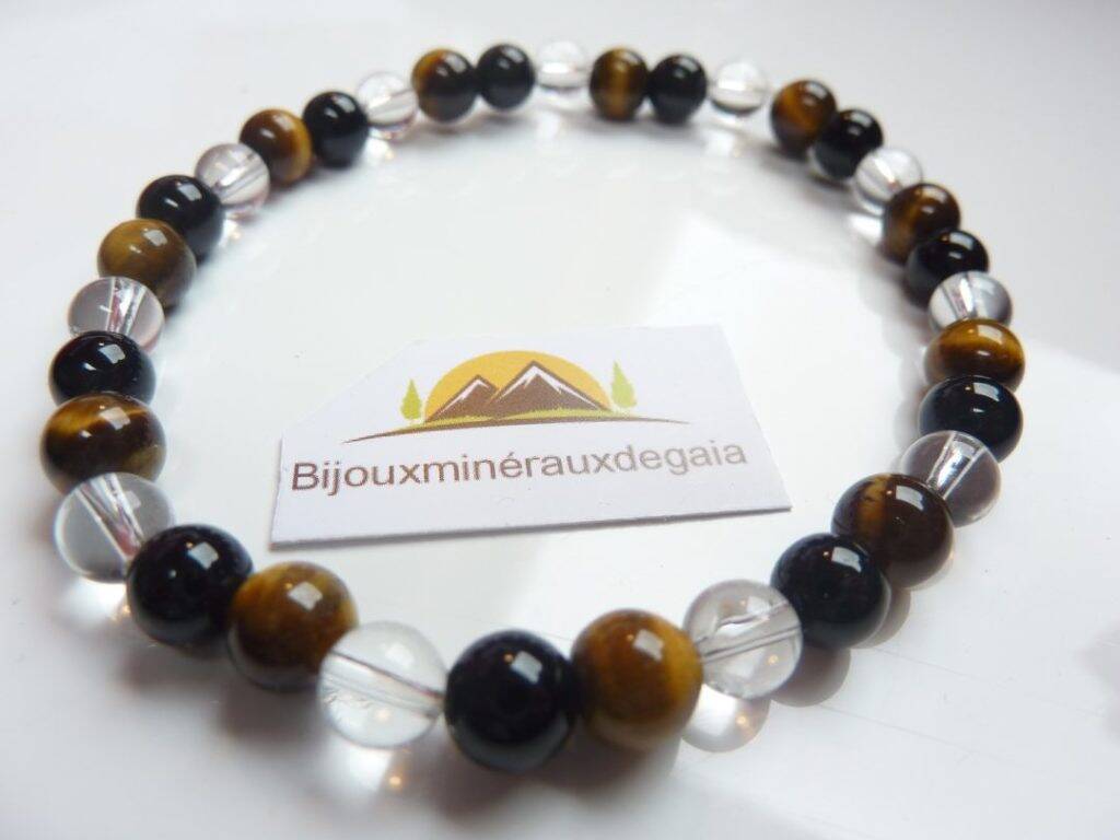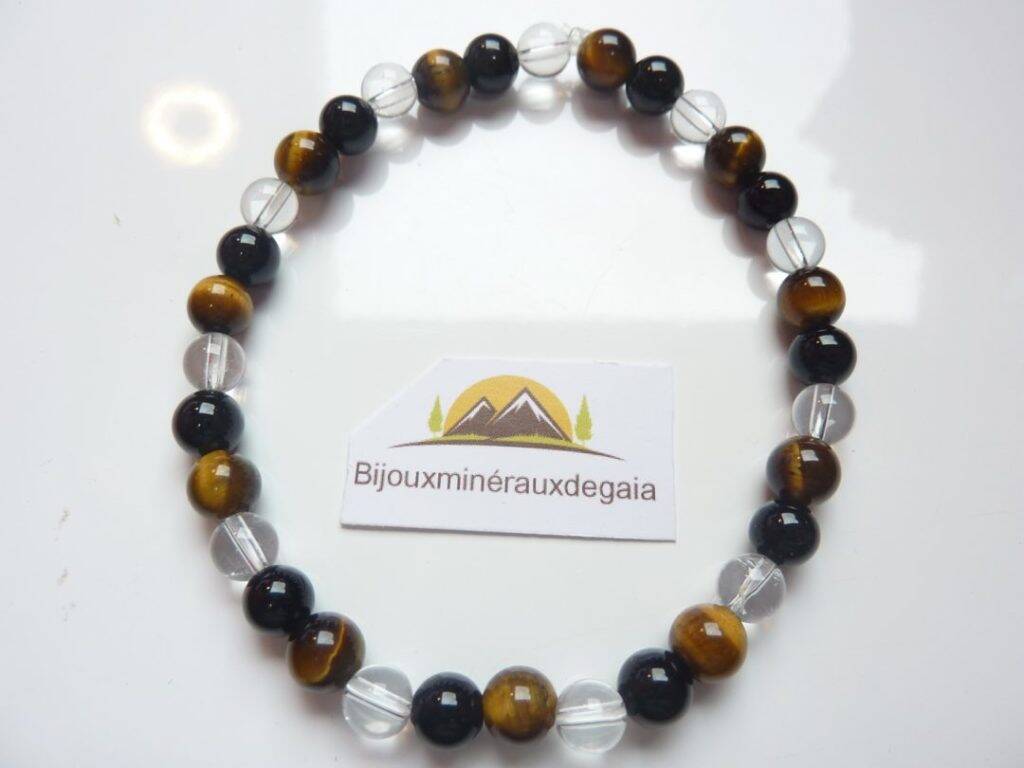 Photo non contractuelle, vous recevrez un Bracelet quartz cristal de roche-Oeil de tigre-Tourmaline noire – 6 mm de qualité identique.