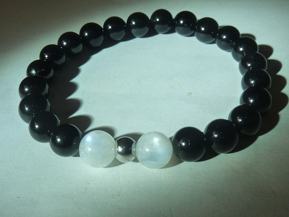 Vous recevrez un Bracelet Spinelle noir-Pierre de lune qualité AA de qualité similaire