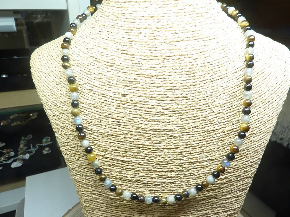 Offrez-vous ou offrez à quelqu’un de spécial ce magnifique collier en oeil de tigre, tourmaline noire et labradorite, et profitez des bienfaits de ces pierres précieuses dans votre vie quotidienne.