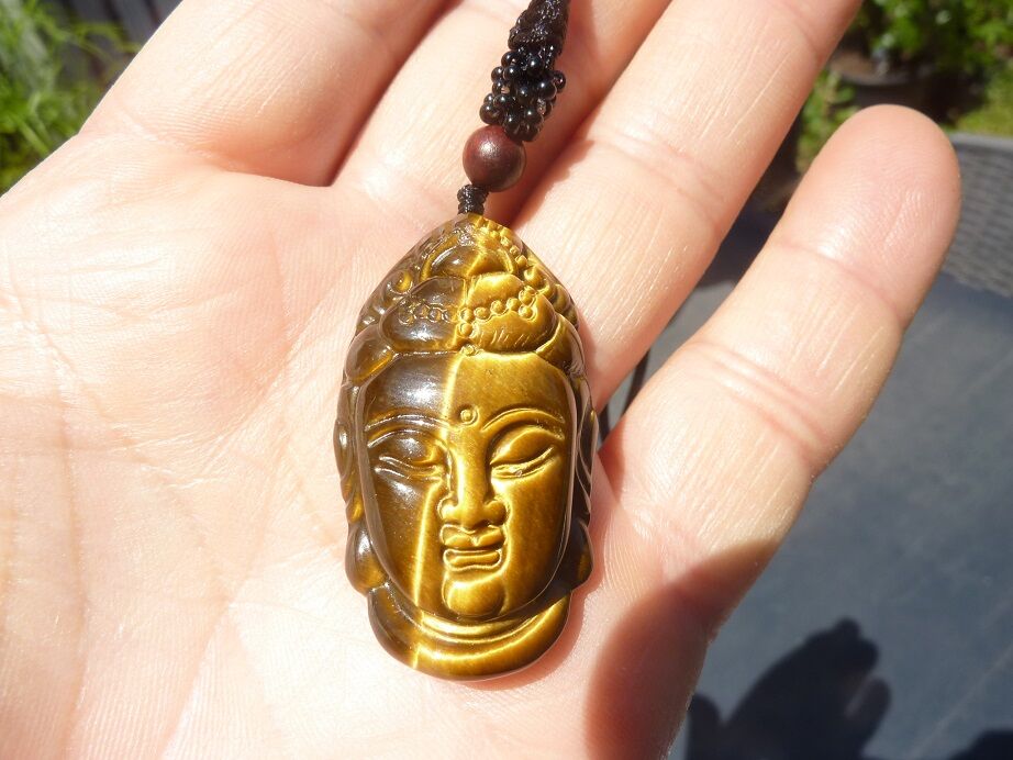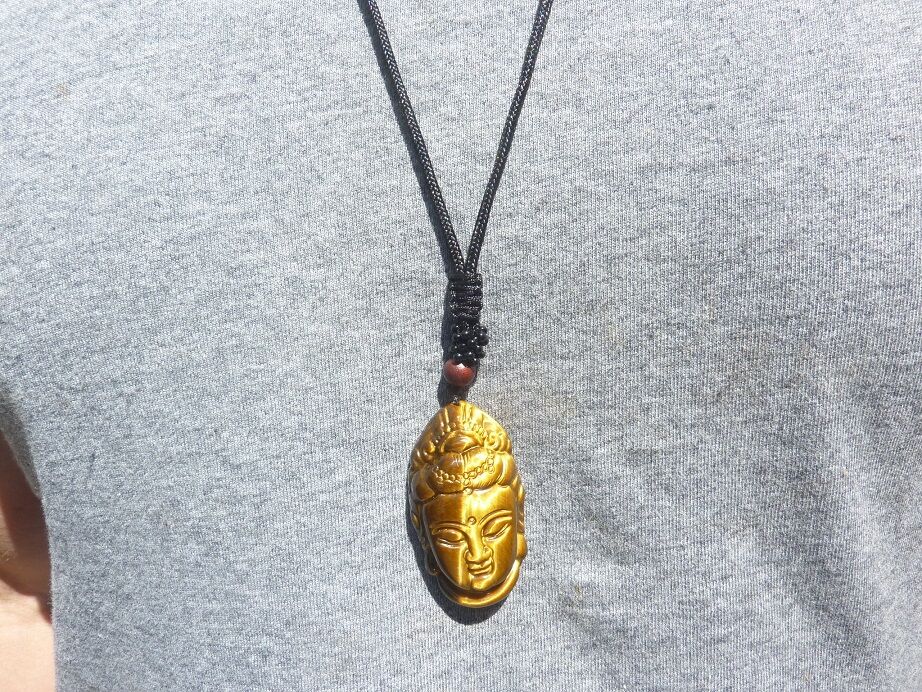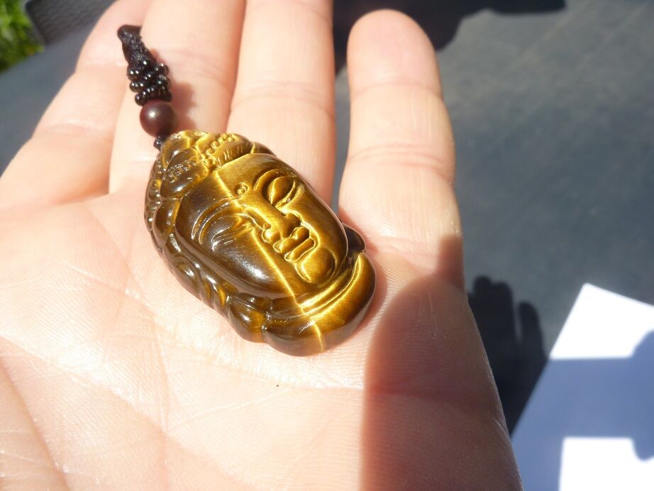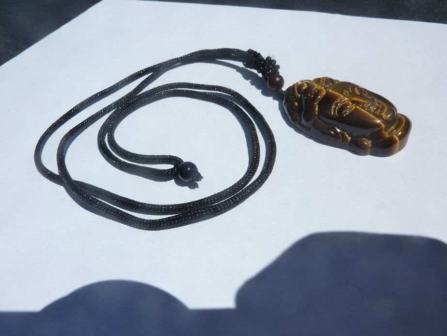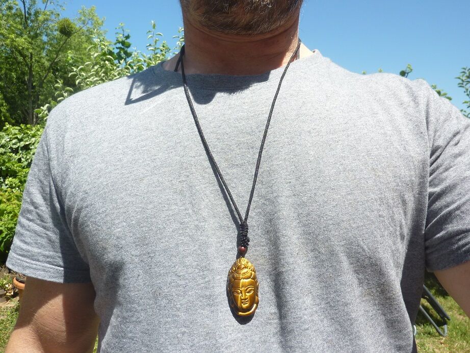 Photo non contractuelle, vous recevrez un collier pendentif Oeil de tigre Bouddha de qualité similaire