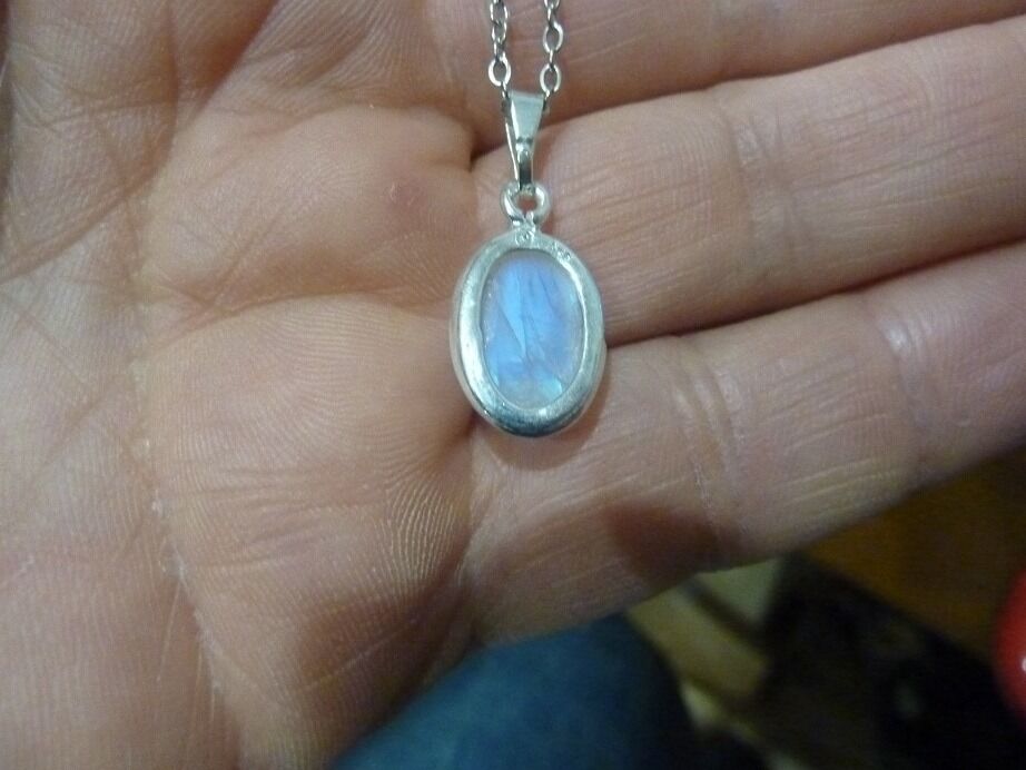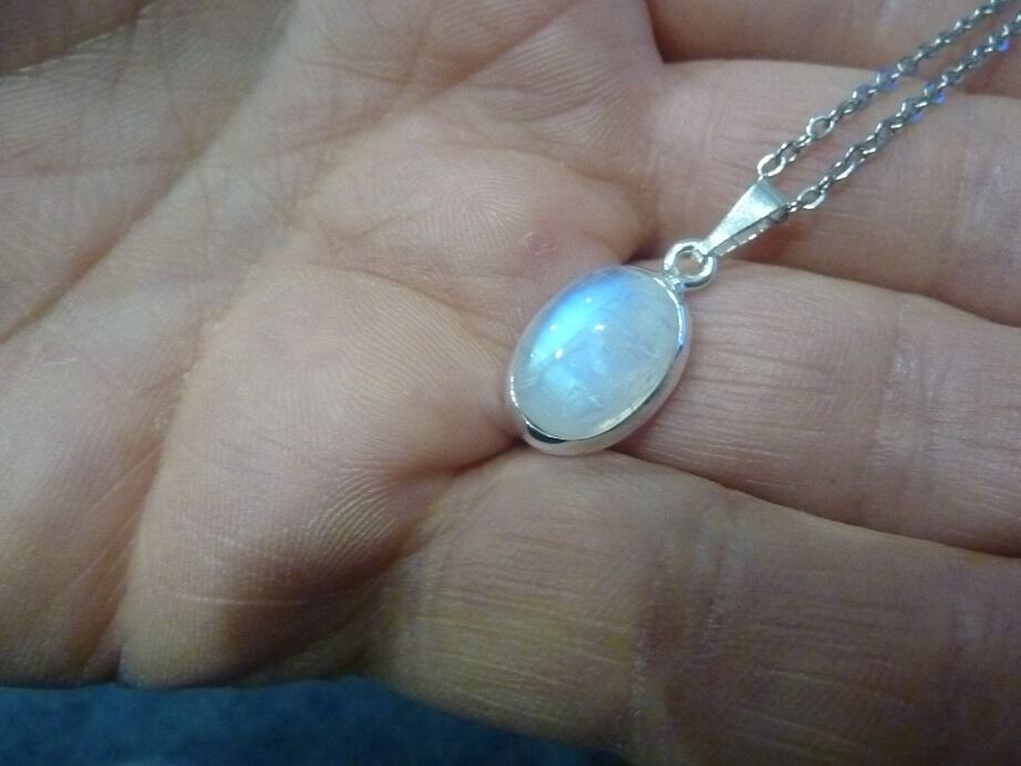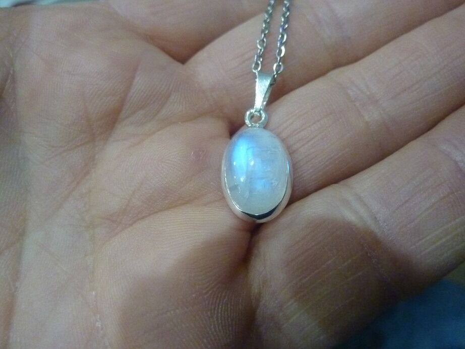 Collier pendentif Pierre de lune 925 GG 1712 + chaine acier inoxydable 45 cm