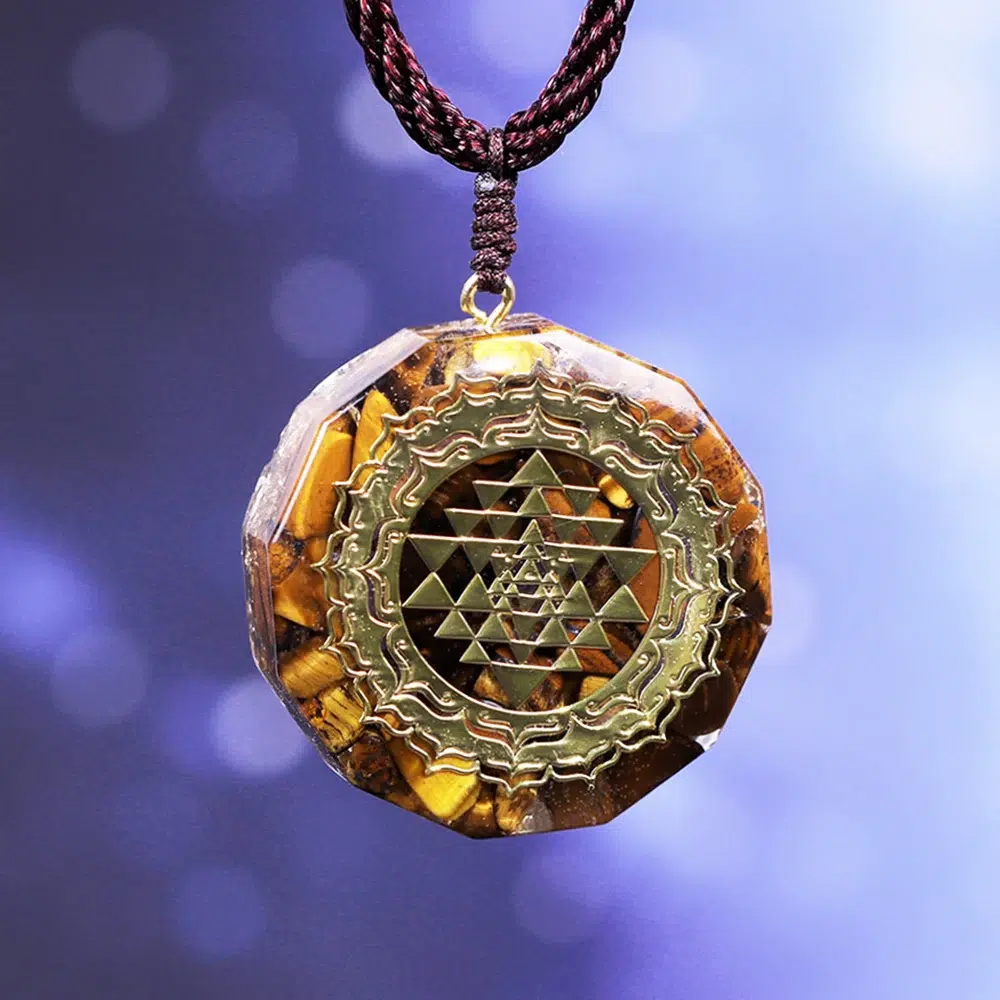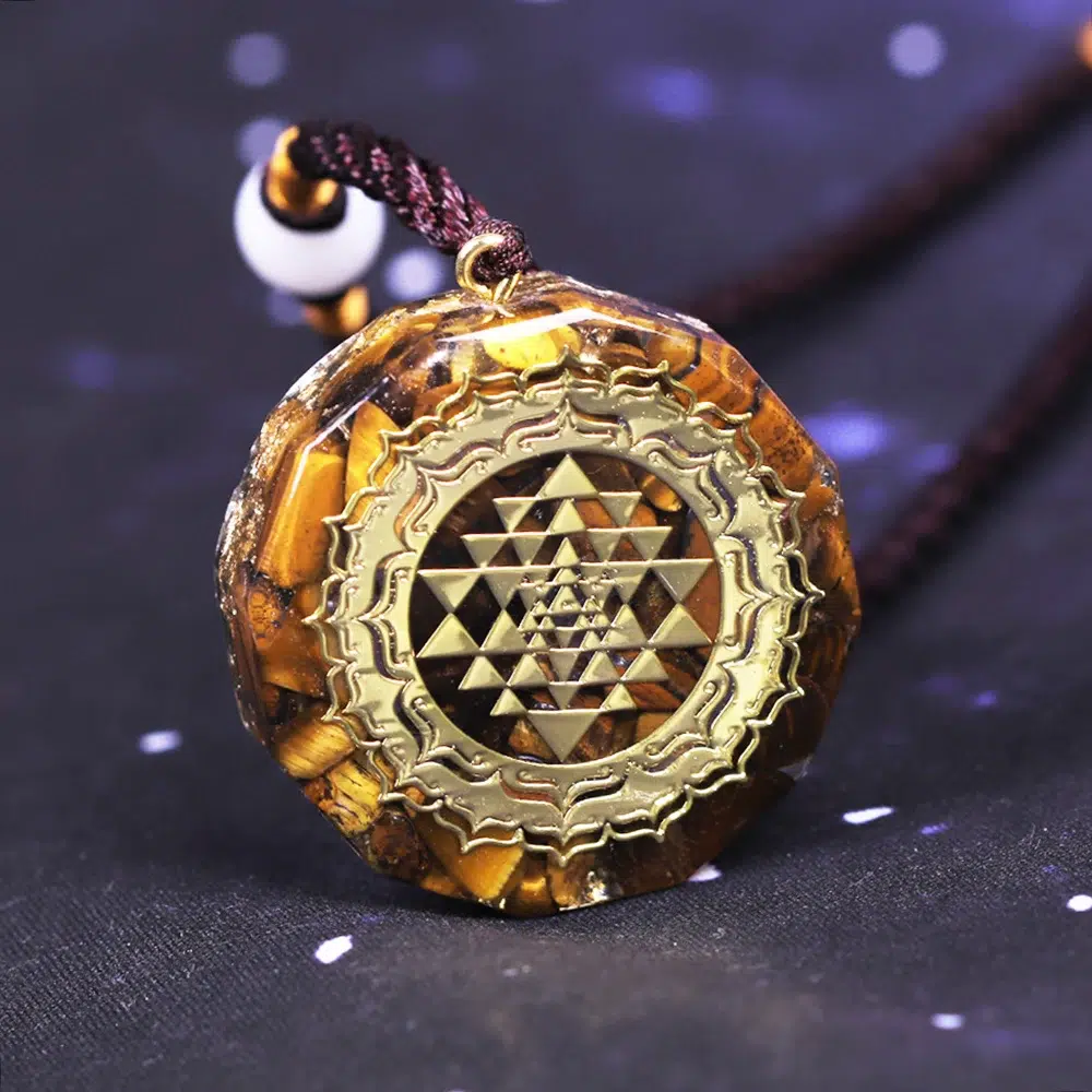 Collier pendentif Sri Yantra- Oeil de tigre orgonite