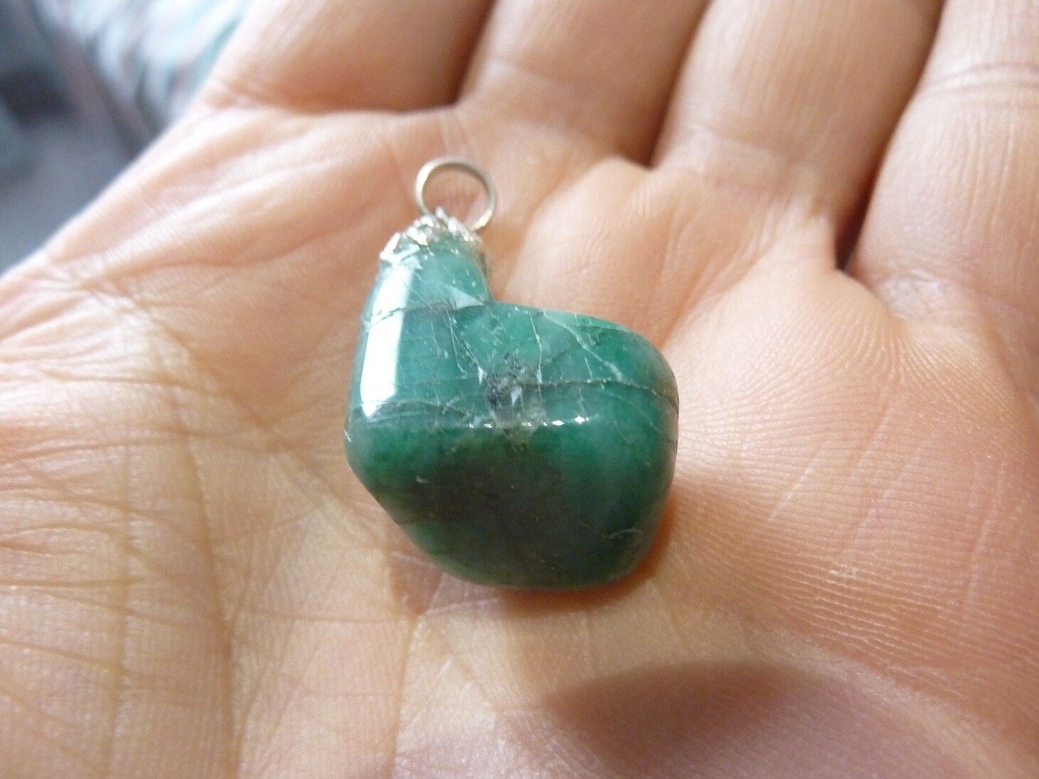 MAGNIFIQUE PENDENTIF EMERAUDE GEMME Béliére argenté RARE 3618