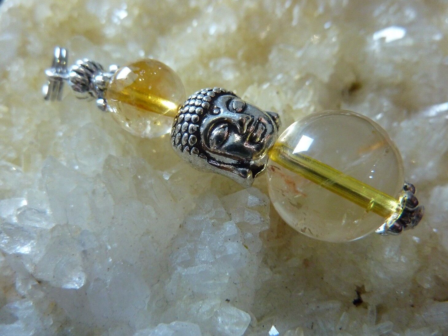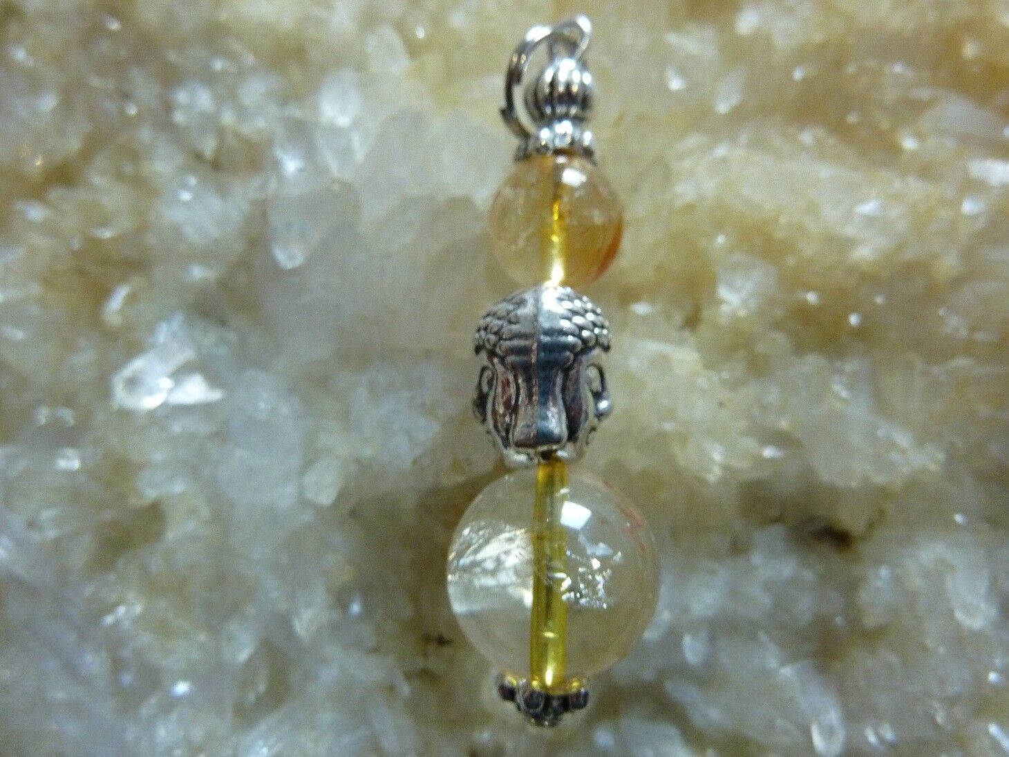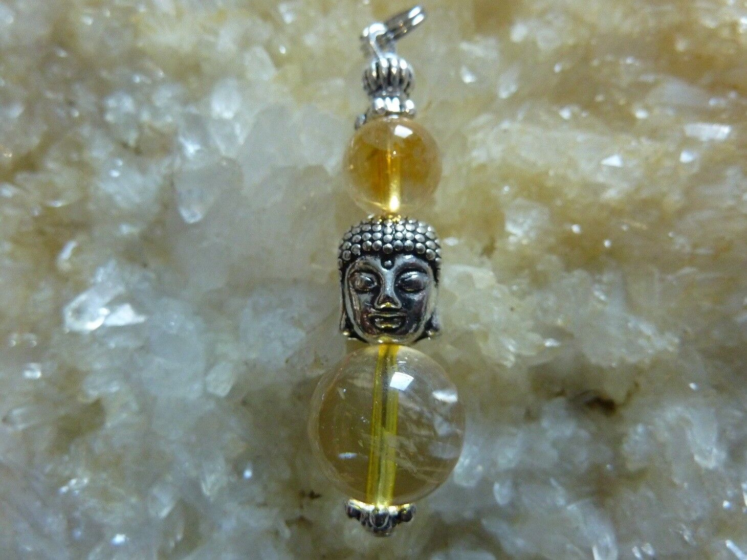 Pendentif Bouddha CITRINE perles rondes 12-8 mm