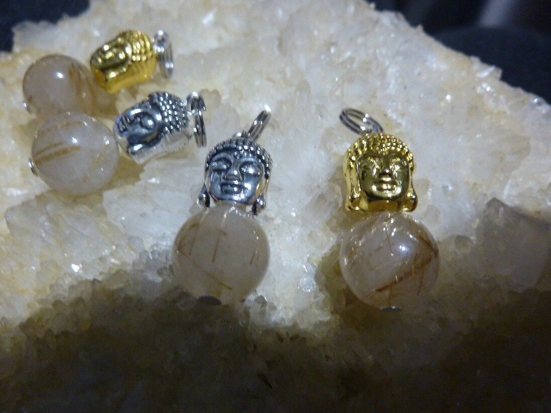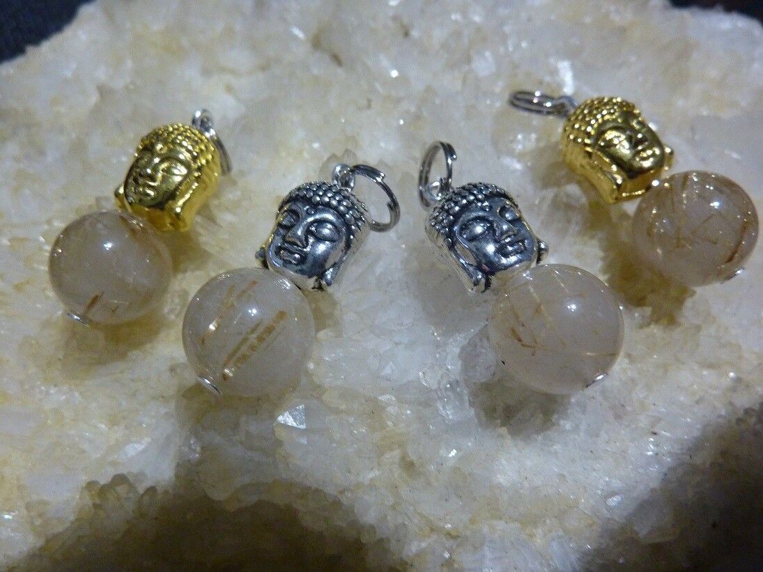 PENDENTIF BOUDDHA QUARTZ RUTILE JOIE ET PROTECTION TRES RARE