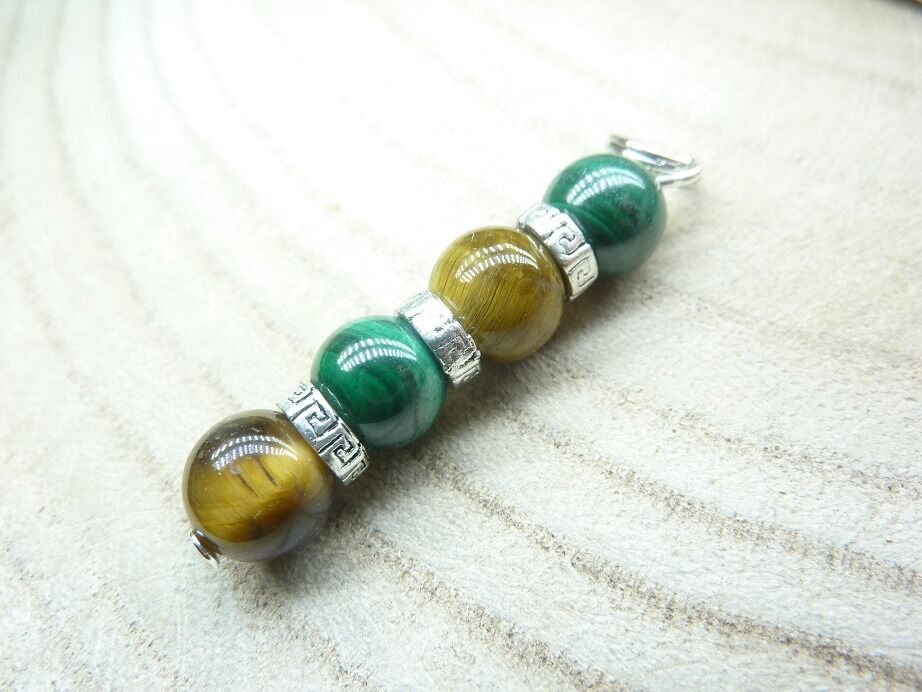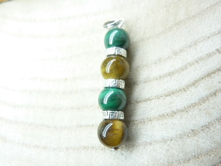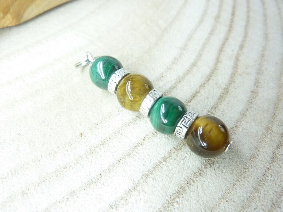 PENDENTIF FORCE ET PROTECTION: MALACHITE,OEIL DE TIGRE