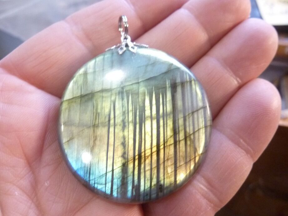 - L’étonnante labradorite favorise l’activation du Troisième Œil, ce qui a pour effet de dissiper le voile sombre des illusions provenant des émotions inappropriées ou des fausses croyances.