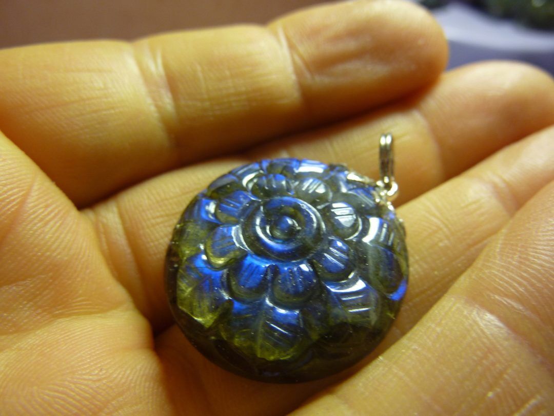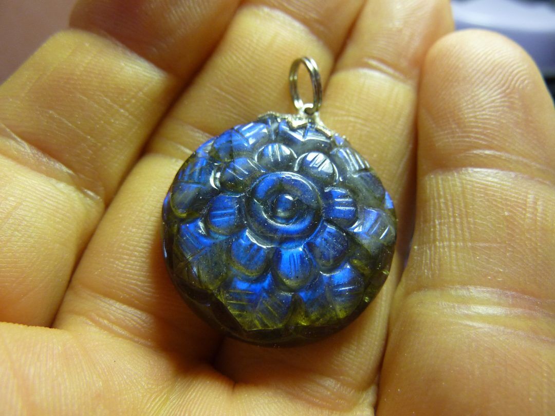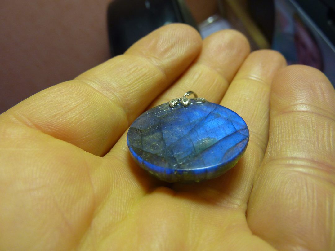 Dimensions pierre seule labradorite: 2,6 cm de diamètre x 0,8 cm d’épaisseur