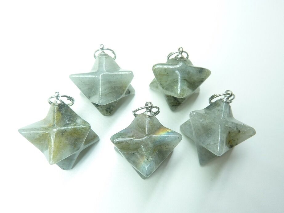 Le pendentif Merkaba en Labradorite est un bijou qui combine la forme sacrée de la Merkaba avec les propriétés énergétiques de la Labradorite. La Labradorite est une pierre naturelle connue pour sa beauté chatoyante et ses vertus spirituelles et énergétiques. Voici quelques-unes des principales vertus associées à la Labradorite :