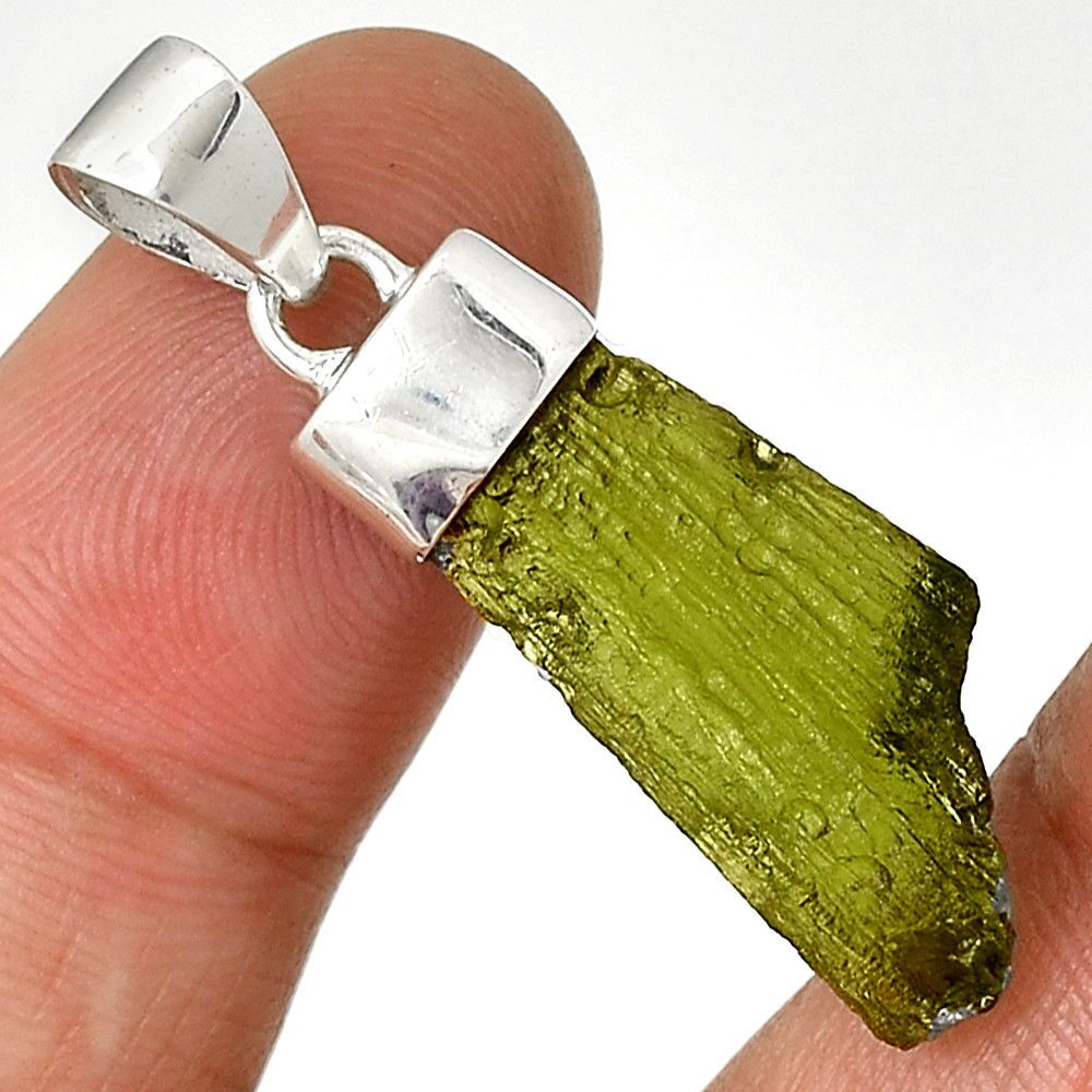 PENDENTIF MOLDAVITE MONTURE EN ARGENT 925. TRES RARE ! REF 7648