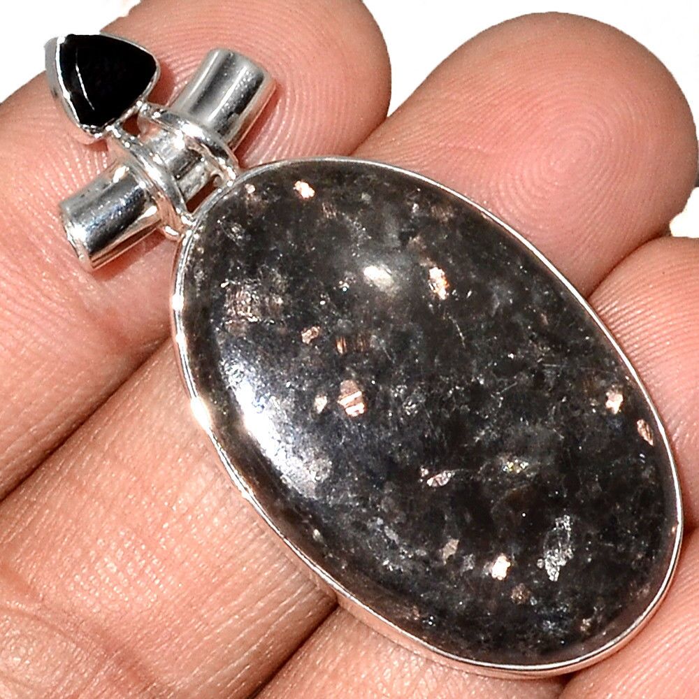 Pendentif Nuummite Véritable et spinelle noir monture argent 925 Rare ref 3578