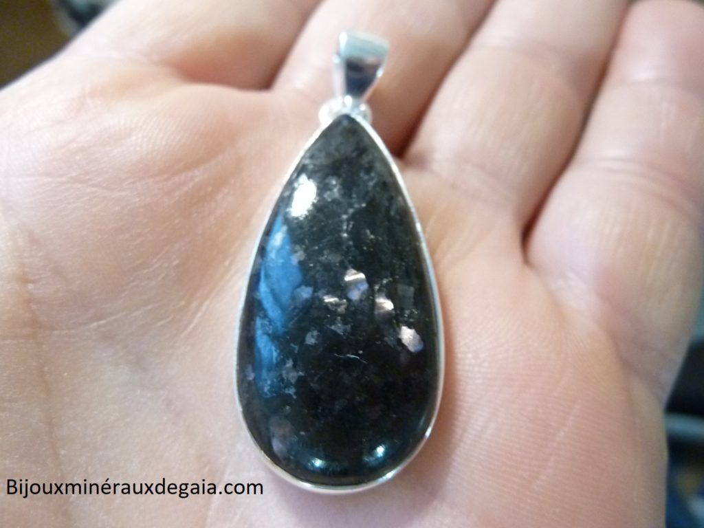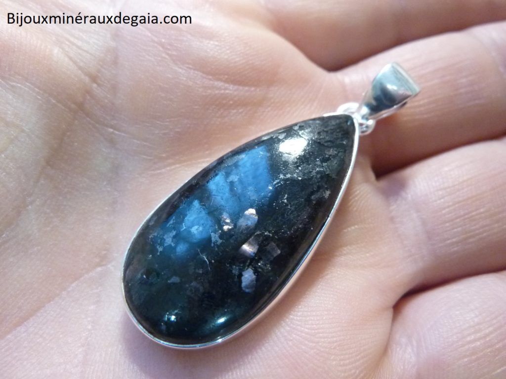 Pendentif Nuummite Véritable monture argent 925 Rare ref 2677
