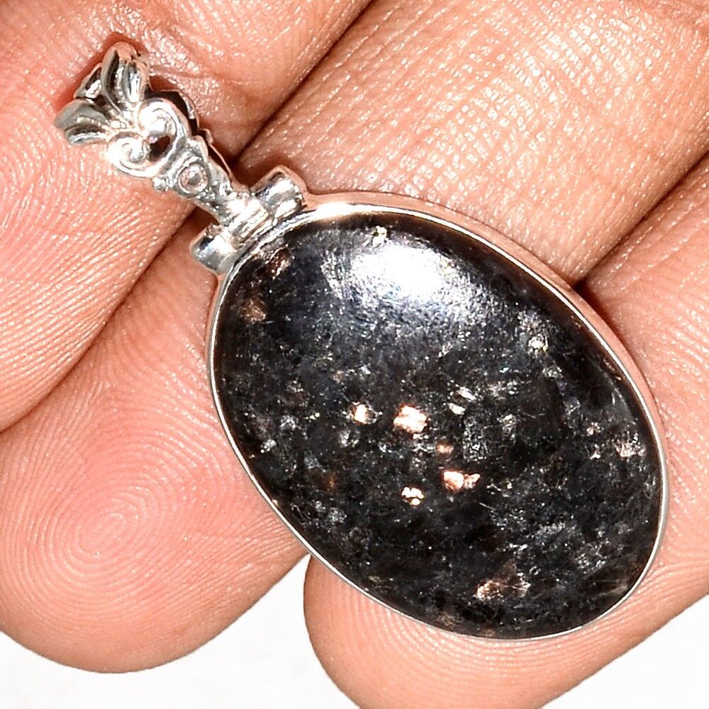 Pendentif Nuummite Véritable monture argent 925 Rare ref 2708