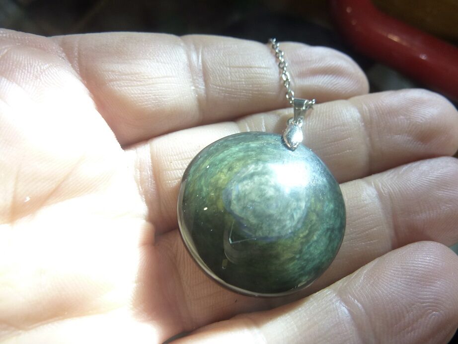 Vous recevrez le pendentif pris sur les photos pas de mauvaise surprise photo prise avec lampe torche pour montrer les couleurs sans lumière la pierre est noire