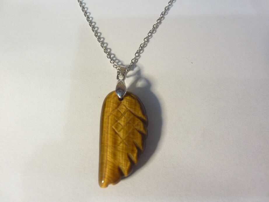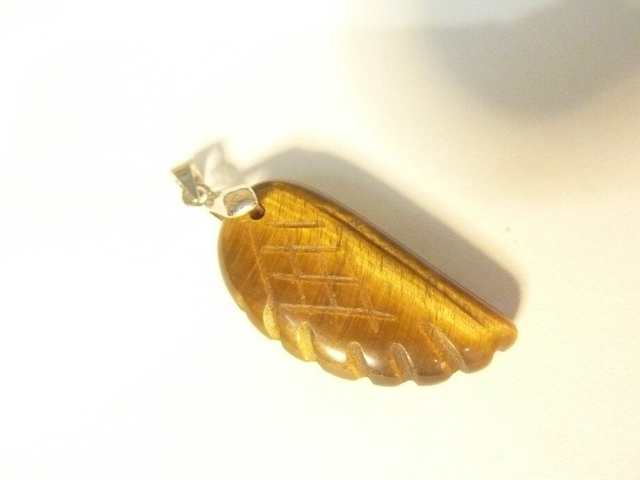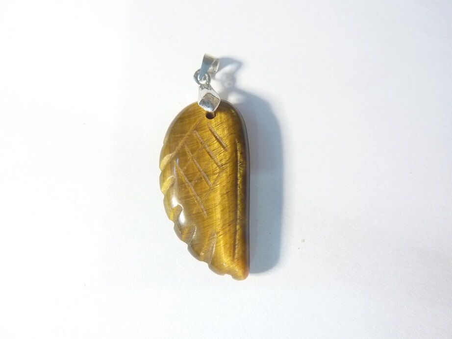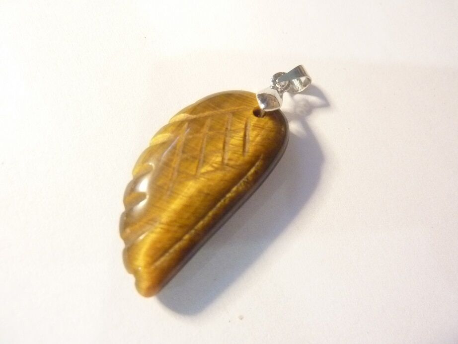 Pendentif Oeil de tigre aile d’ange Argent 925 protection et confiance en soi + chaine acier inoxydable 45 cm