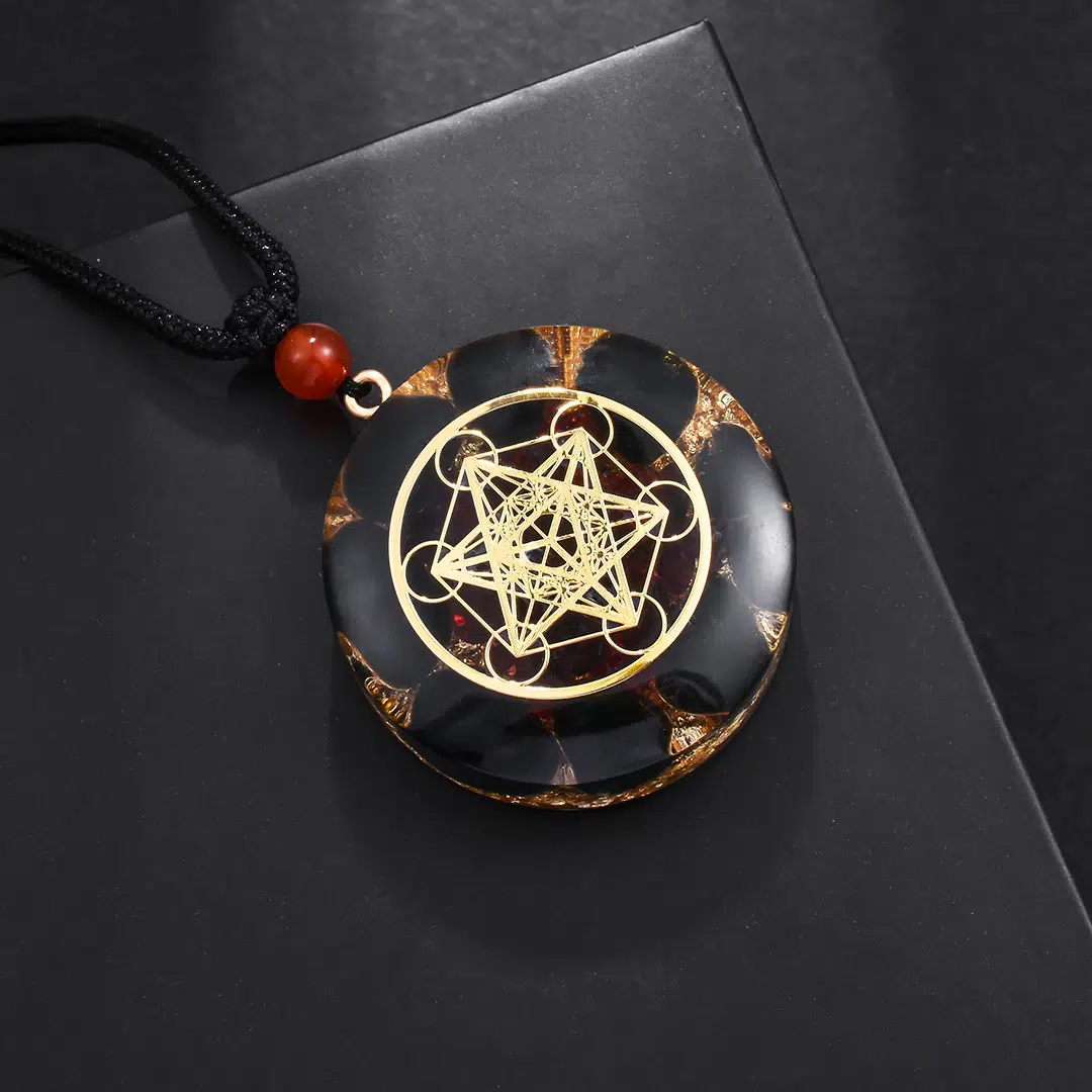 Pendentif orgonite cube Métatron – Obsidienne – grenat