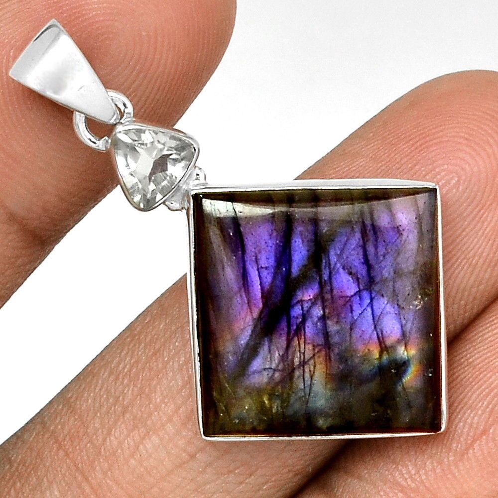 Pendentif protection labradorite-Diamant herkimer monture argent 925 ref 4672