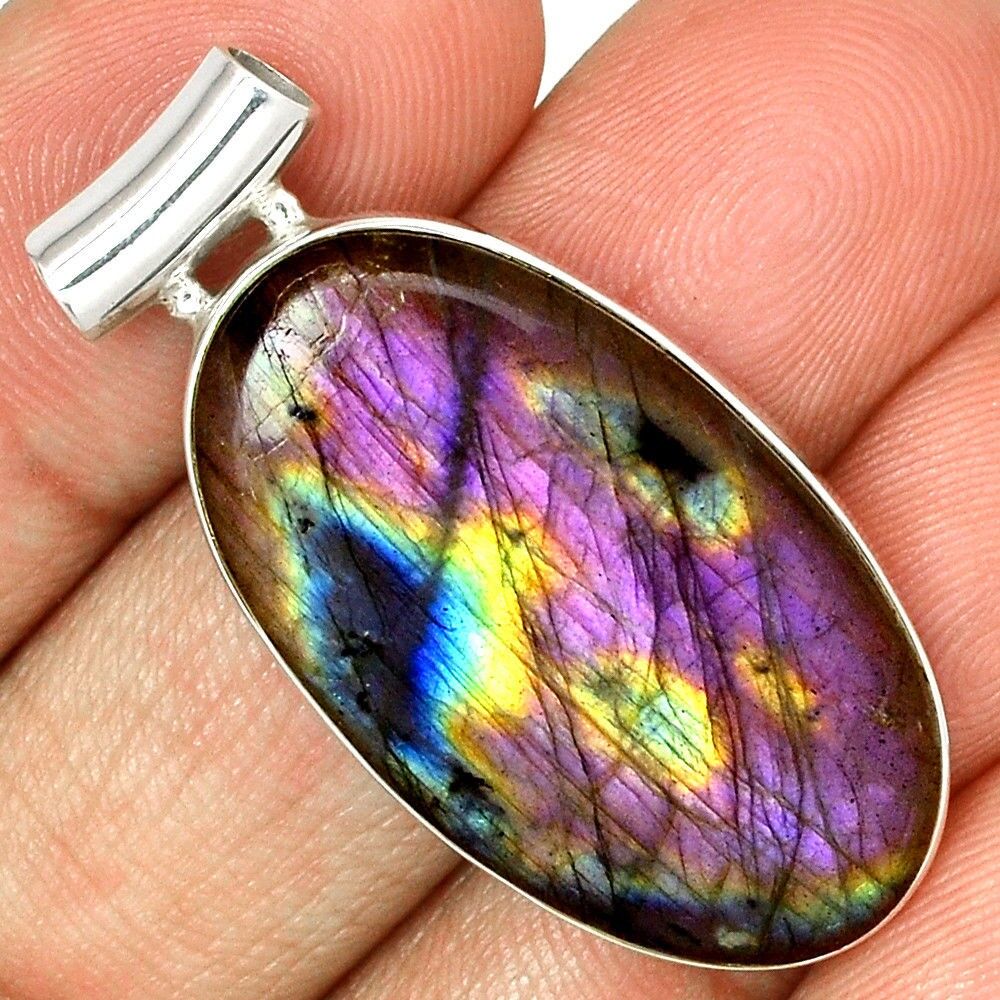 Pendentif protection labradorite violet très rare! Monture argent 925 ref 9103