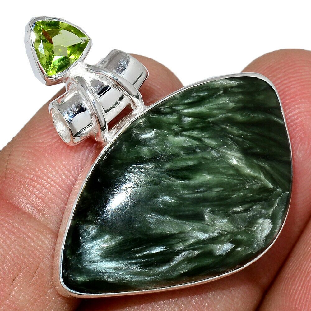 Pendentif Séraphinite-Péridot Monture argent 925 ref 1684