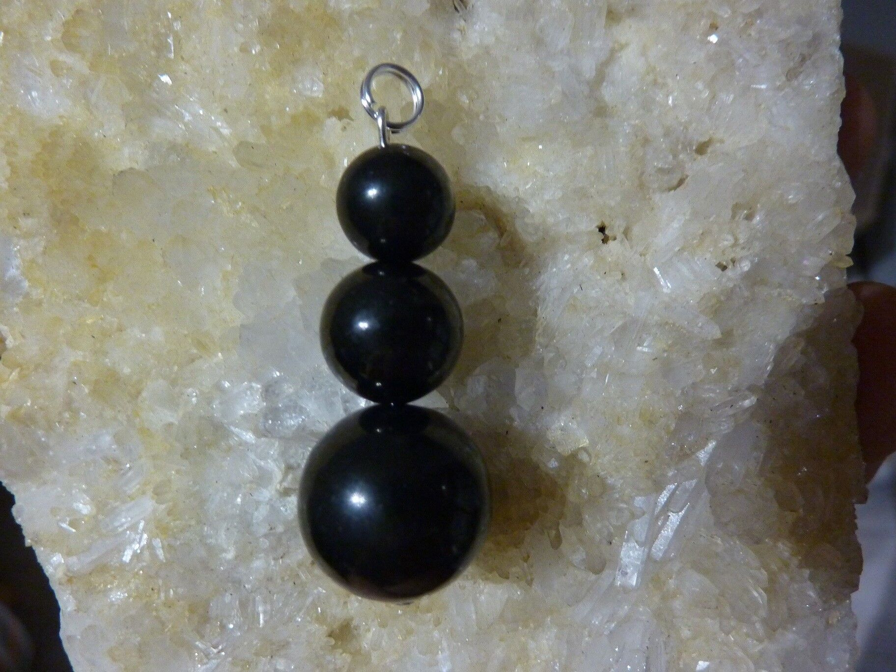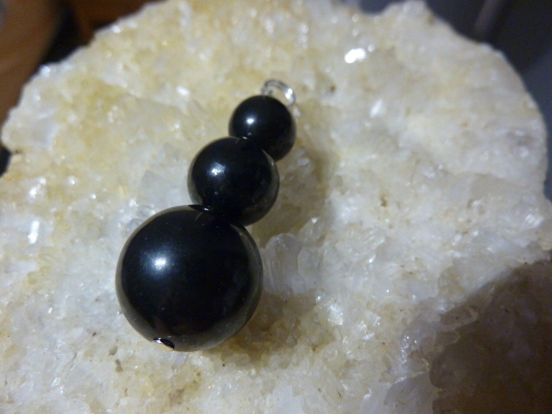 PENDENTIF SHUNGITE : PERLES 16-12-10 MM TOP PROTECTION