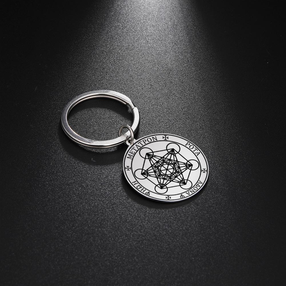 Portez le porte-clé cube de Métatron en acier inoxydable au choix or ou argent de haute qualité avec sa chaine