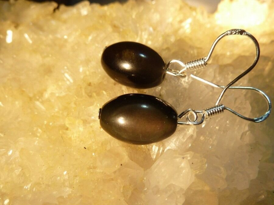 MAGNIFIQUE BOUCLES D’OREILLES EN OBSIDIENNE OEIL CELESTE