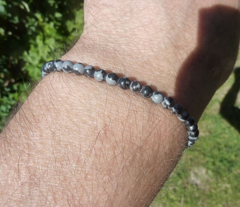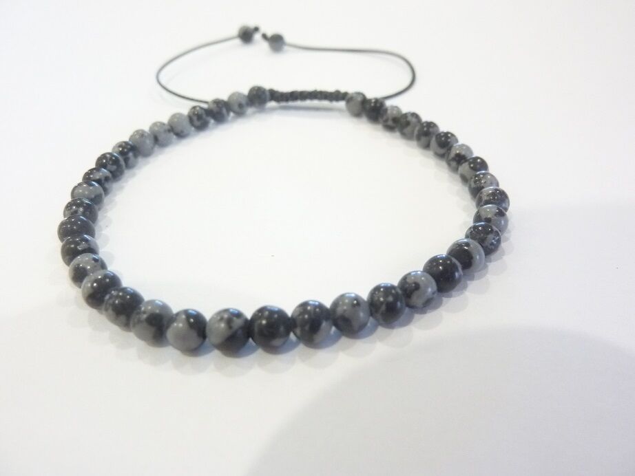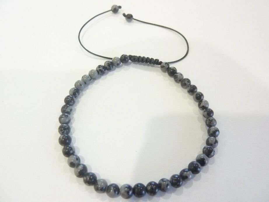 Bracelet réglable Obsidienne neige-Perles rondes de 4 mm