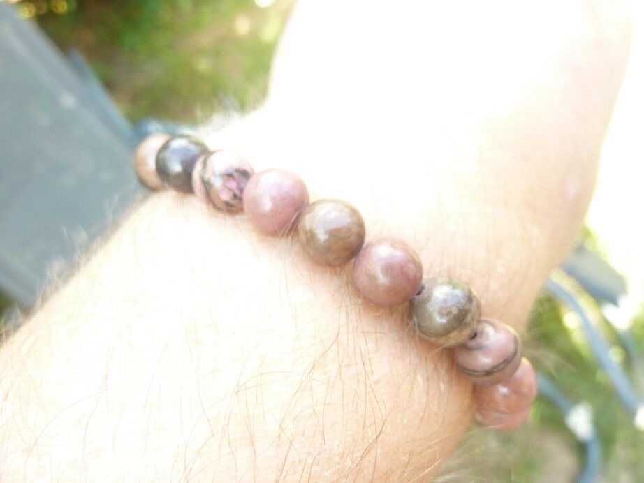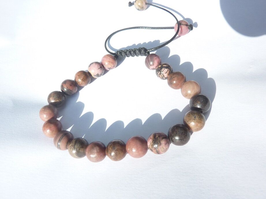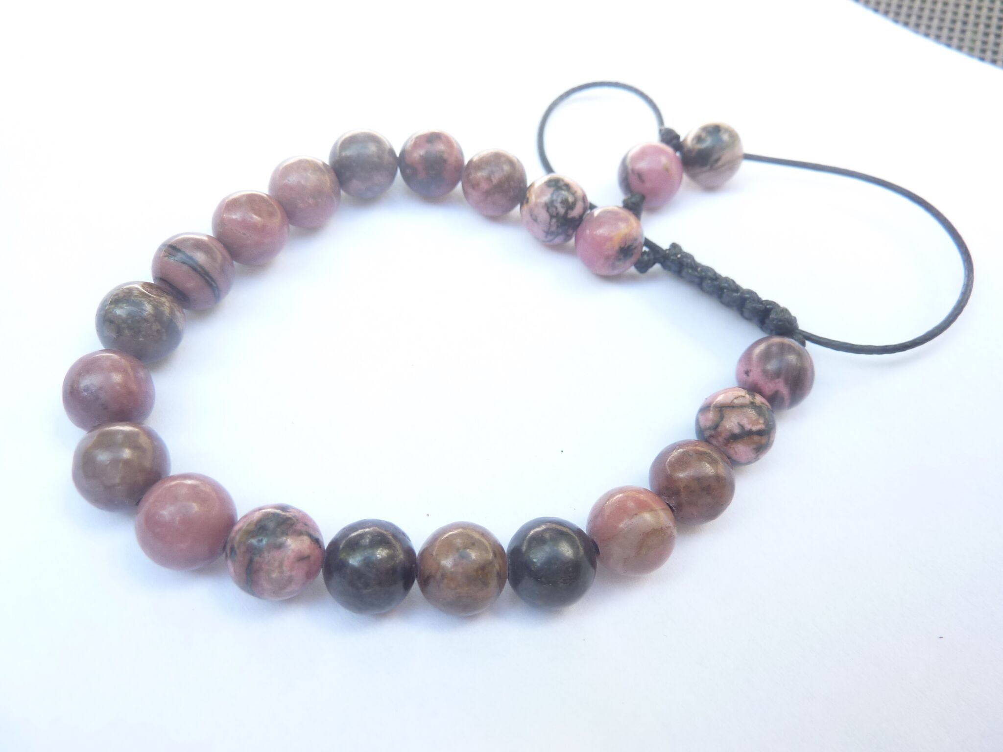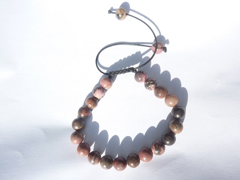 Bracelet Rhodonite ajustable perles rondes 8 mm
